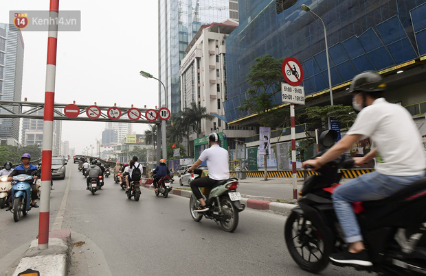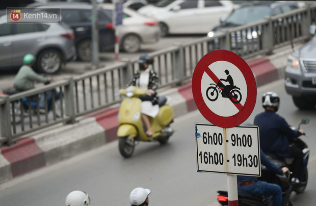 Dù lực lượng chức năng đã đặt biển cấm xe máy tại cầu vượt ở trục giao thông Lê Văn Lương - Láng Hạ nhưng người dân vẫn cố tình đi vào.