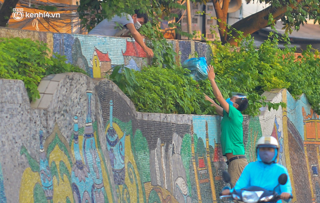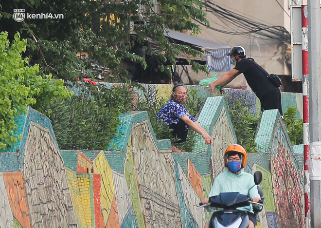 Theo ghi nhận của chúng tôi vào chiều 2/8, nhiều người dân vẫn tự do nhảy qua khu vực phong toả để nhận nhu yếu phẩm tiếp tế từ bên ngoài.