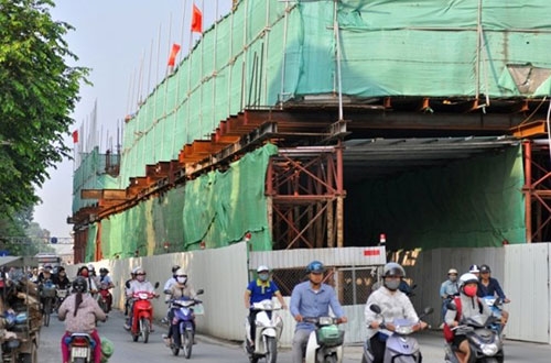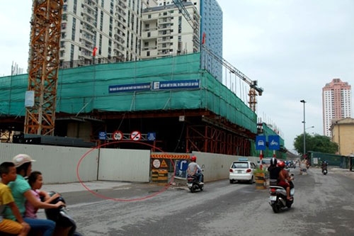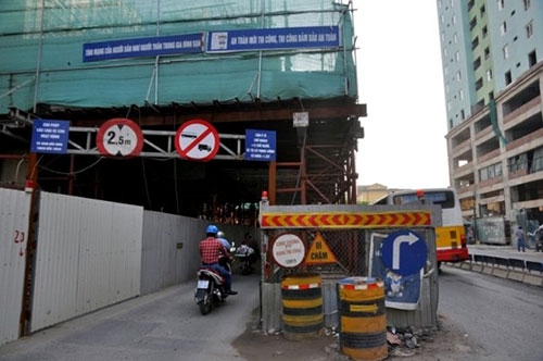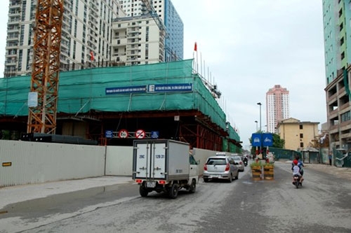 | Tại ngã tư Nguyễn Trãi - Khuất Duy Tiến – Nguyễn Xiển do đang thi công cùng lúc tuyến đường sắt trên cao và hầm chui Thanh Xuân nên phần hàng rào chiếm quá nửa lòng đường Nguyễn Trãi. Tình trạng ùn tắc qua nút giao thông này xảy ra thường xuyên. |