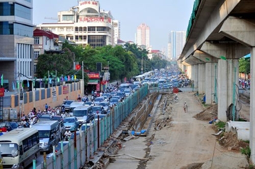 | Chiều 11.9, Sở Giao thông Vận tải Hà Nội đã họp và có văn bản yêu cầu các đơn vị thi công tuyến đường sắt trên cao đẩy nhanh tiến độ, thu gọn rào chắn các vị trí đã thi công xong hoặc chưa thi công, nhằm mở rộng tối đa diện tích phục vụ giao thông. Sở cũng cần đề nghị các lực lượng như cảnh sát trật tự, lực lượng tự quản, thanh niên tình nguyện, thanh tra giao thông tham gia hỗ trợ công tác điều tiết giao thông, giải quyết các sự cố. Đối với các tuyến đường hay ùn tắc, sở cần nghiên cứu, phân chia lộ trình xe buýt chạy cho hợp lý, đảm bảo giao thông được thông suốt. Theo thống kê của Sở Giao thông vận tải Hà Nội, trên địa bàn thành phố hiện có 183 điểm triển khai xây dựng, trong đó có 12 công trình trọng điểm. Điểm ách tắc nhiều nhất là hầm chui Nguyễn Trãi-Khuất Duy Tiến; điểm Hoàng Quốc Việt; Xuân Thủy, Cầu Giấy; nhà ga bến xe Hà Đông cũ; ga La Thành; ga đường Láng; nút giao Mai Dịch; nhà ga số 7 (Cầu Giấy-Trần Đăng Ninh); nhà ga số 6 (trước cổng Đại học Quốc gia)… |