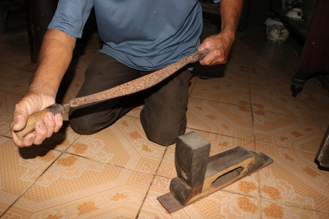 Ông Cúc giới thiệu thêm, để có thuốc rê hút, ông bà xưa phải sử dụng bàn xắt thuốc.
