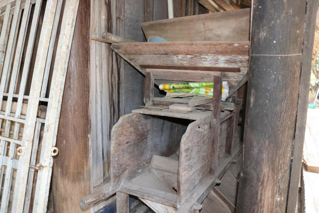 Bên một góc nhà là máy quạt hay máy rê lúa, một món đồ cổ rất quý hiếm mà ông Cúc luôn trân trọng. Ông bảo, nếu mất cái này, có lẽ sẽ không tìm thấy cái thứ hai.