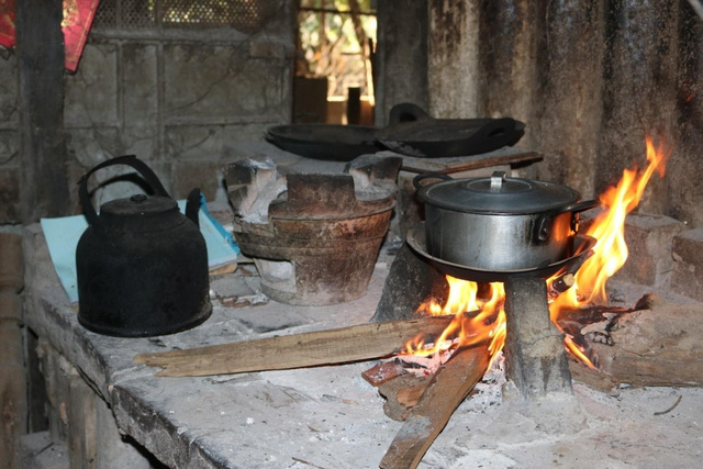 Hiện tại gia đình của ông Cúc vẫn sử dụng gian bếp cũ, dùng củi để nấu nướng để tiết kiệm chi phí sinh hoạt.