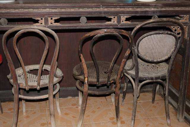 Ghế đón tiếp khách đã quá cũ, hư hỏng dần theo thời gian. Tuy vậy, hình như không có thứ gì bị vứt đi.