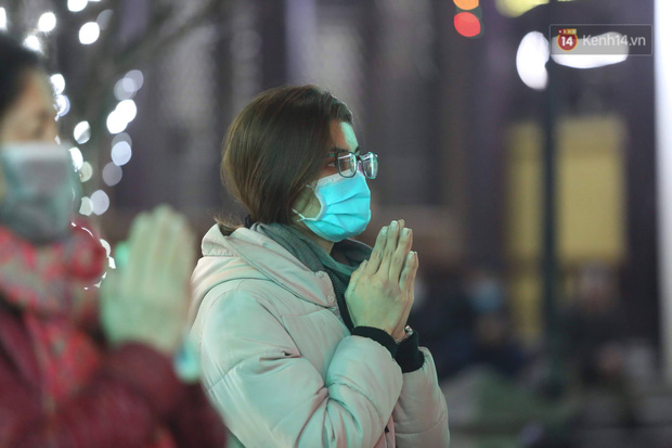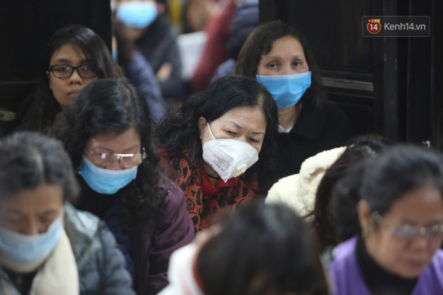 Ghi nhận của PV trong tối nay, nhiều người đeo khẩu trang ngay trong lúc đọc kinh cầu nguyện. Việc này lần đầu tiên xuất hiện tại các buổi lễ ở chùa Phúc Khánh.