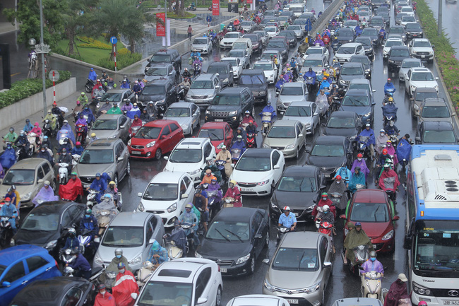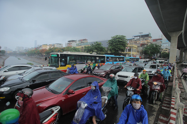 Ghi nhận trong sáng cùng ngày, trận mưa lớn khiến nhiều tuyến phố bị ngập nhẹ, mưa xảy ra vào đúng thời gian cao điểm khiến người dân vật lộn trên đường đi làm.