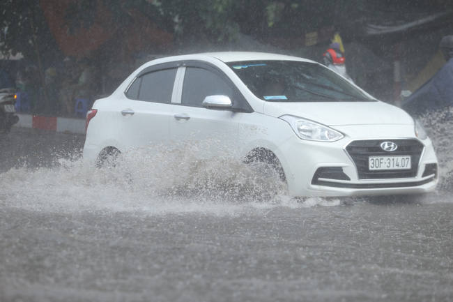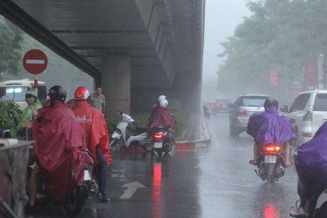 Trận mưa lớn khiến nhiều tuyến phố khu vực nội thành Hà Nội ngập nhẹ, mưa vào đúng giờ cao điểm khiến người dân vật lộn trong khi đi làm.
