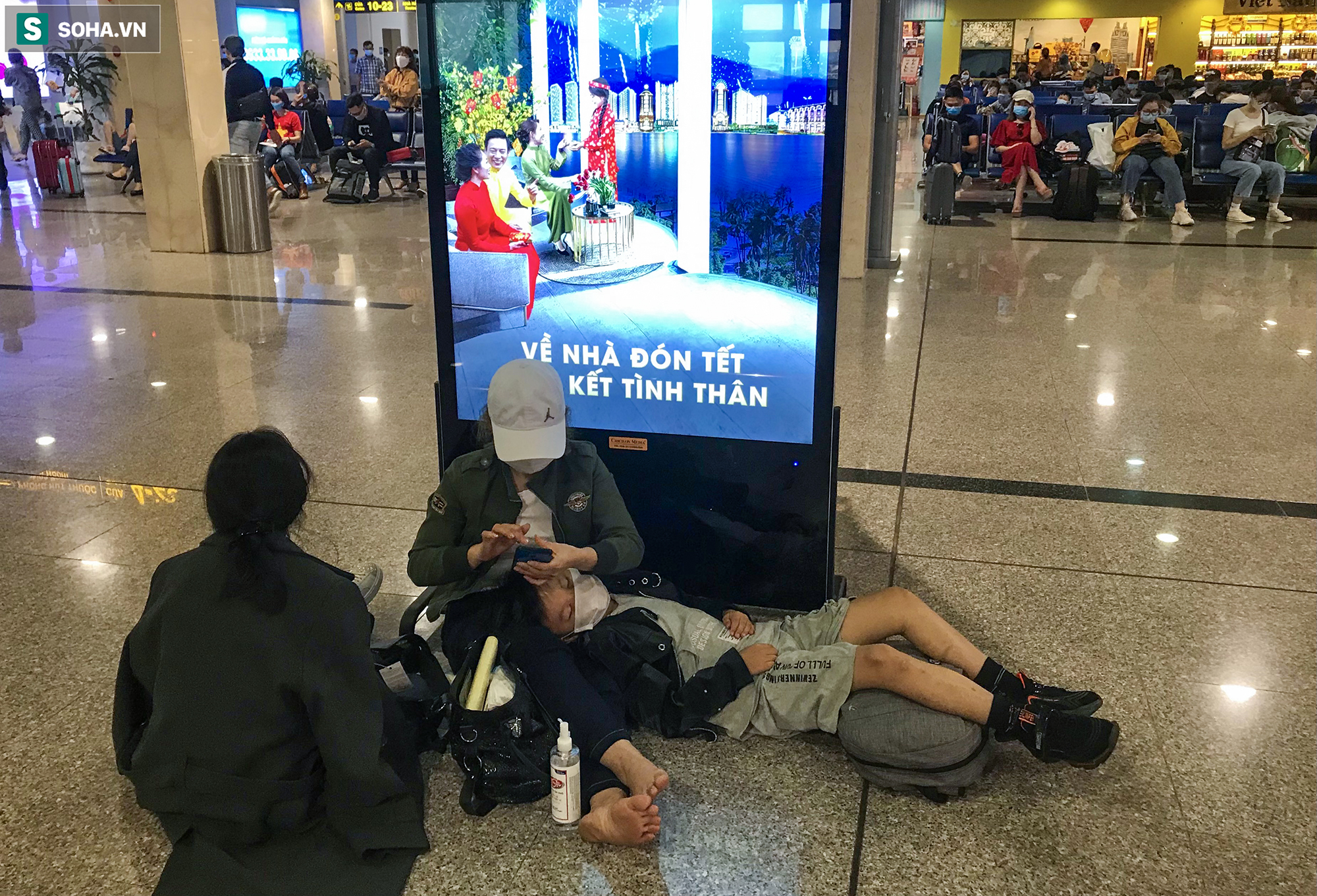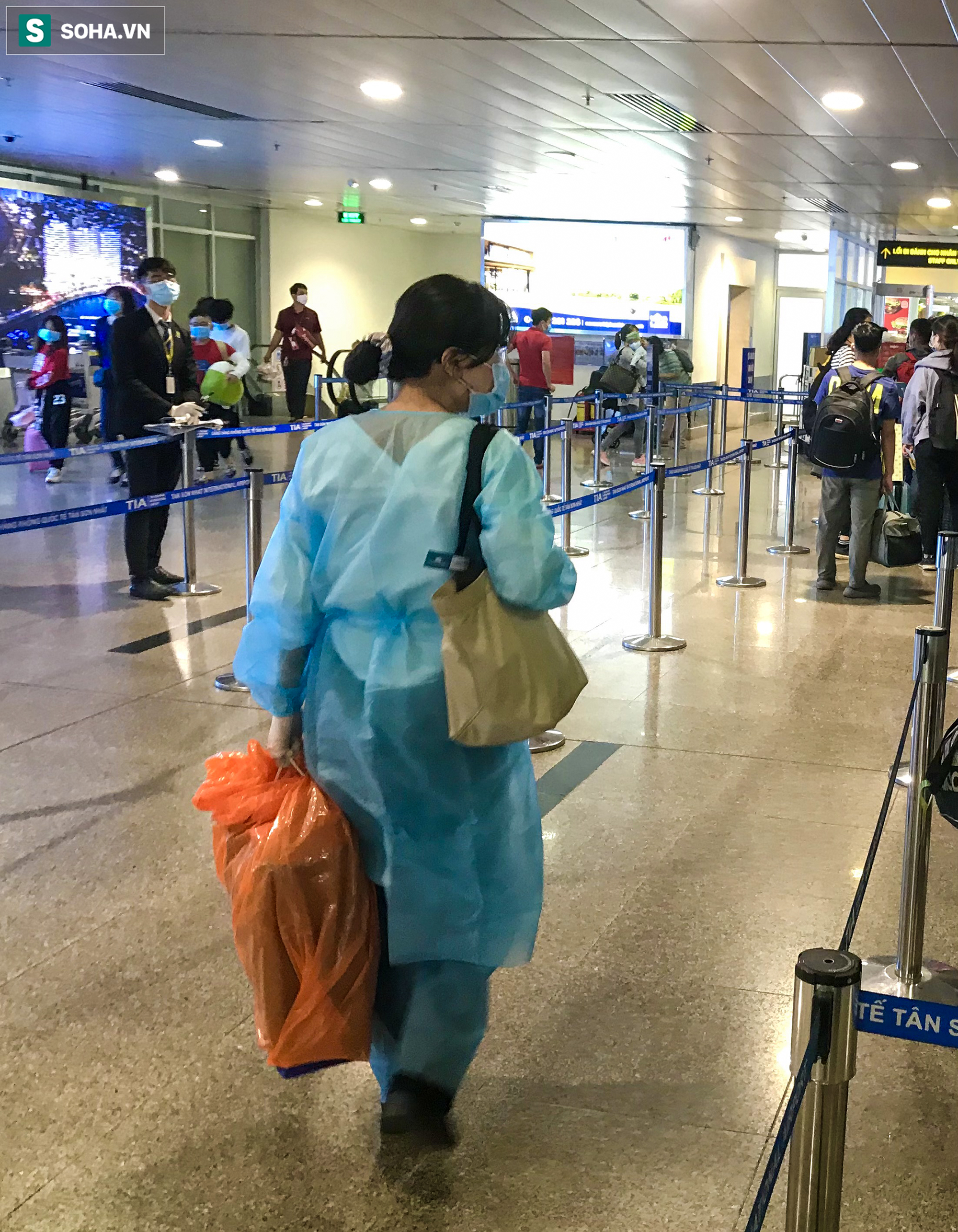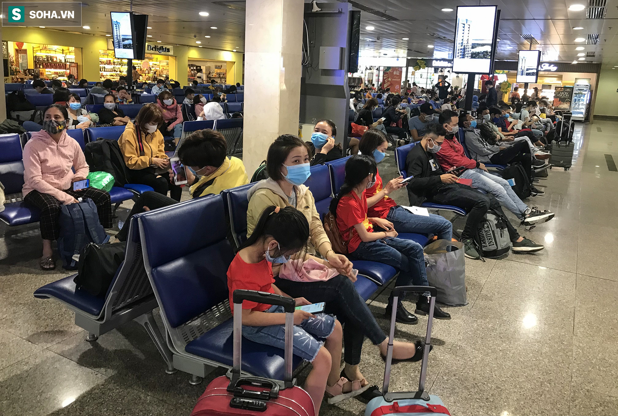 08/02/2021 22:18Ảnh: Người dân mặc áo mưa, đồ bảo hộ kín mít tại sân bay Tân Sơn Nhất chờ về quê đón Tết