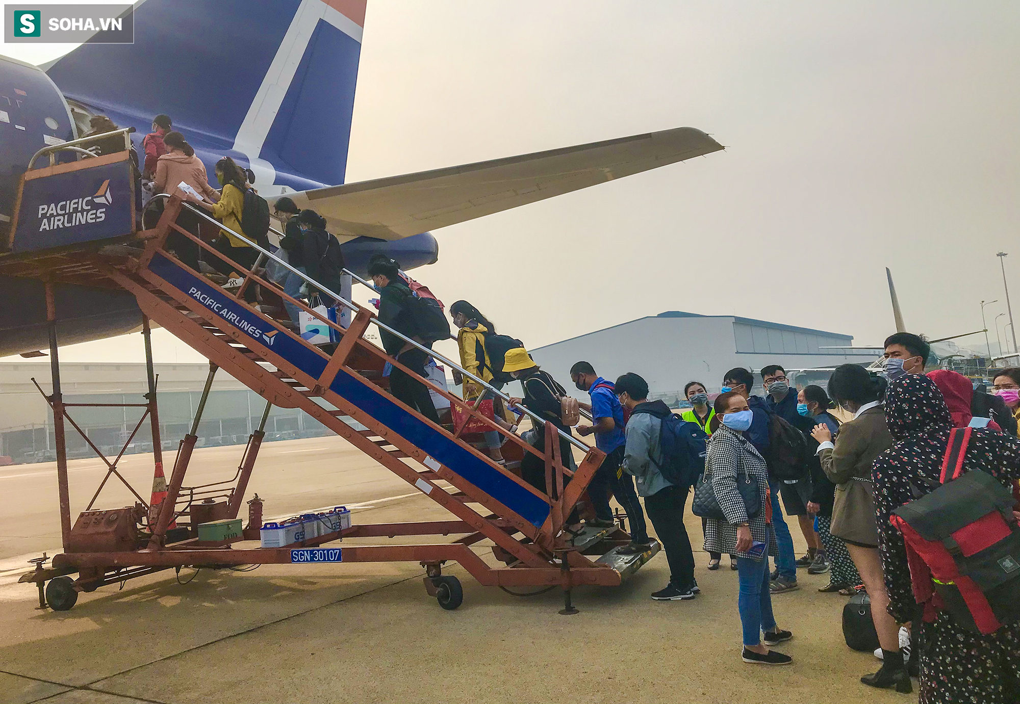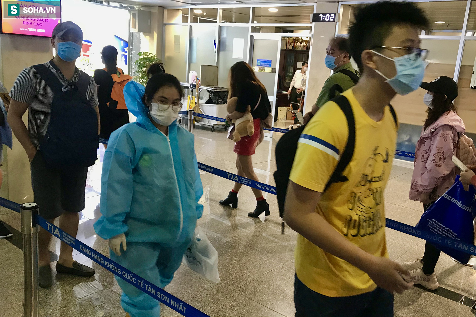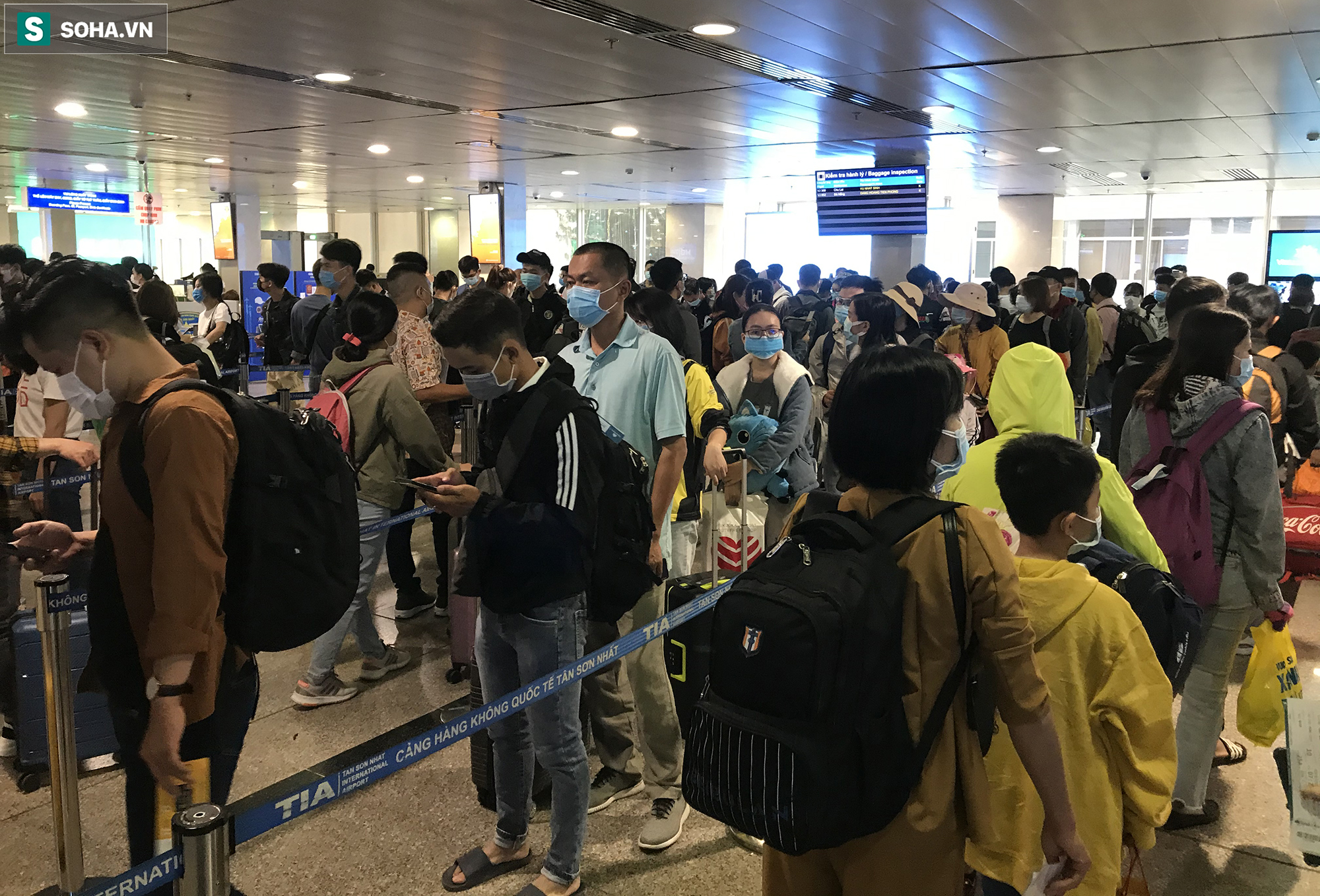 08/02/2021 22:18Ảnh: Người dân mặc áo mưa, đồ bảo hộ kín mít tại sân bay Tân Sơn Nhất chờ về quê đón Tết