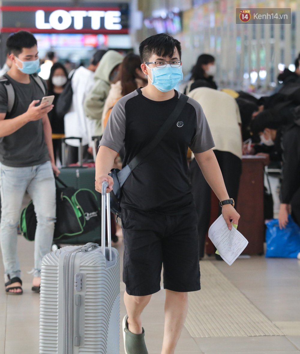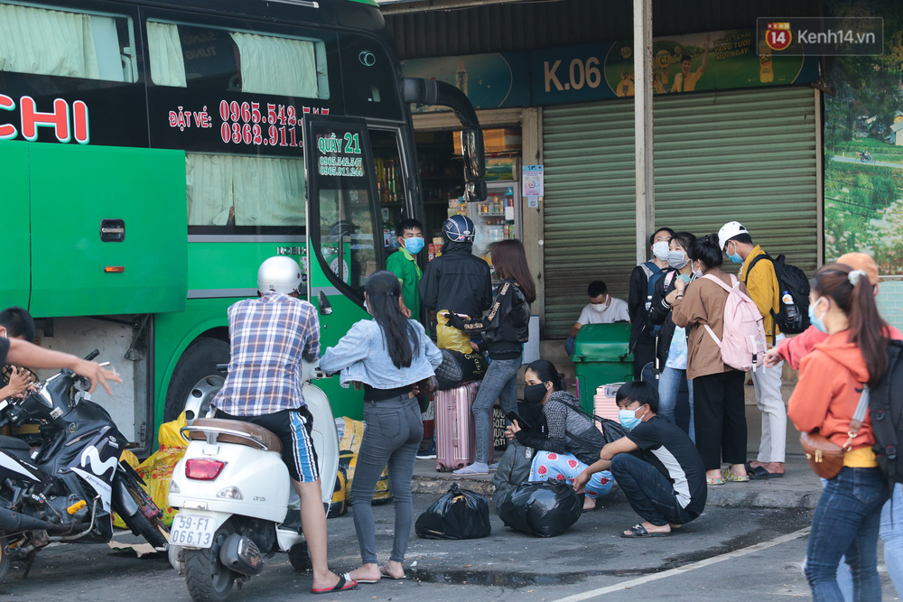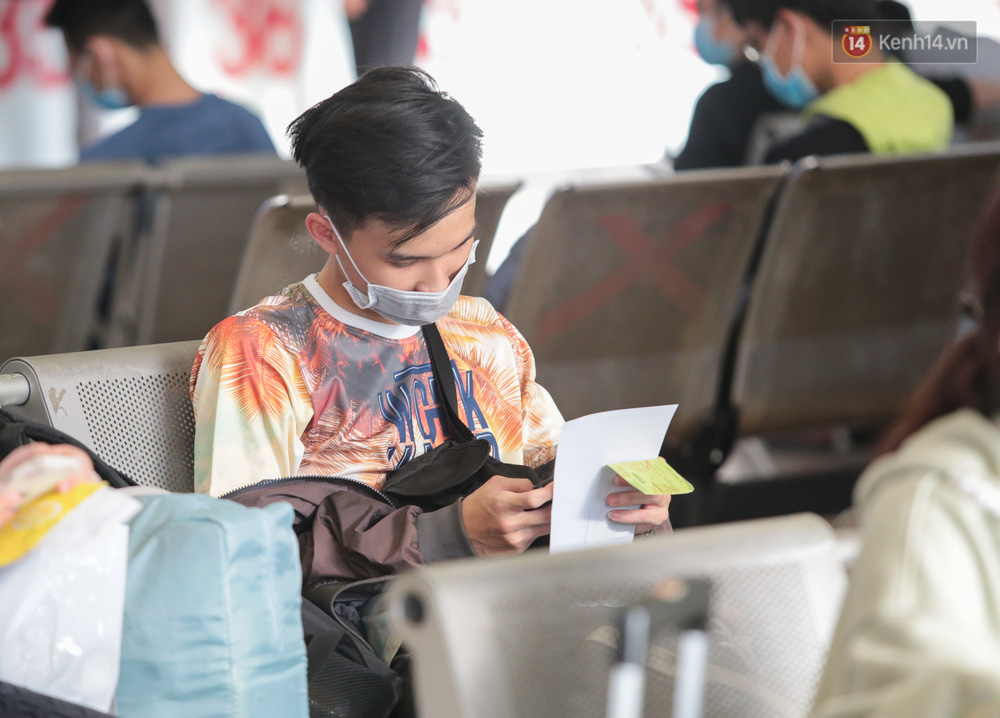 Hà Phước Thành (sinh viên quê Bình Định) tranh thủ sau khi hoàn thành xong bài thi đã nhanh chóng ra bến xe mua vé về quê trước khi lệnh hạn chế di chuyển có hiệu lực. "Em có nghe nói về giãn cách xã hội nên sau khi thi xong em cũng về luôn chứ ở đây cũng không biết làm gì", Thành chia sẻ.