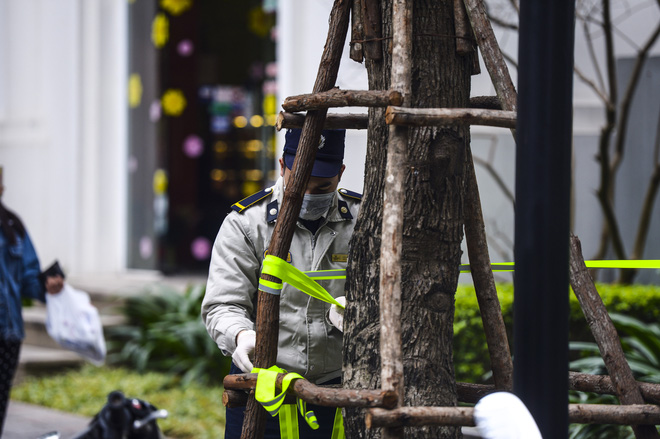 Sáng 29/1, sau khi toà chung cư T6 có người mắc COVID-19 bị phong toả, cách ly, rất nhiều người đã đến đây tiếp tế lương thực cho những người bên trong.