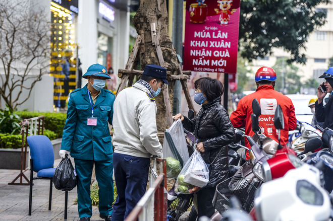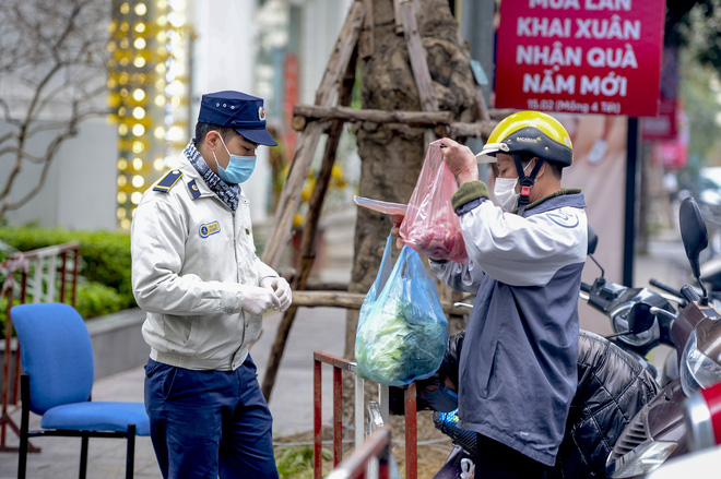 29/01/2021 18:21Ảnh: Người dân tiếp tế lương thực cho toà chung cư có người mắc COVID-19 ở Times City, Hà Nội