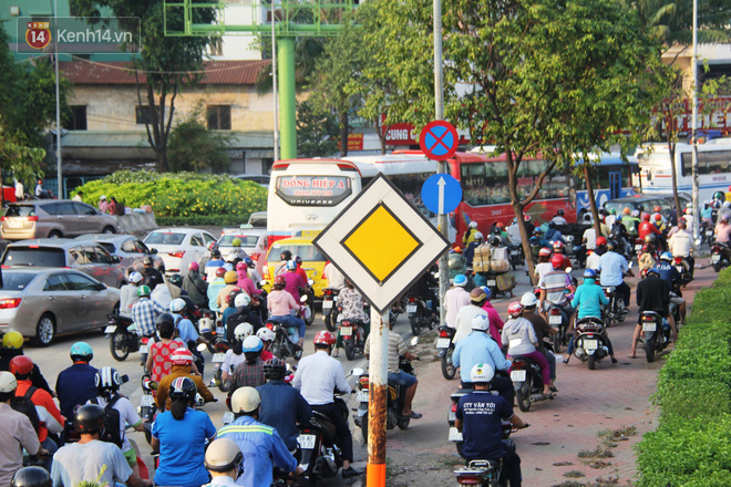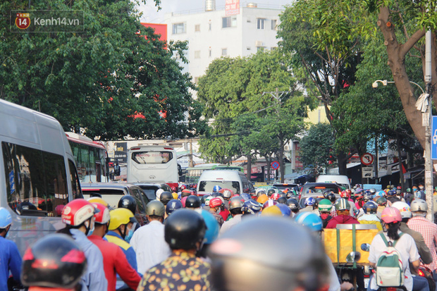Trong khi đó, tại đường Đinh Bộ Lĩnh (khu vực Bến xe miền Đông), cảnh ra vào đón trả khách, xe buýt hoạt động khiến cho khu vực này giao thông vô cùng hỗn loạn. Mặc dù có rất nhiều CSGT tham gia điều tiết nhưng cảnh ùn ứ vẫn diễn ra.
