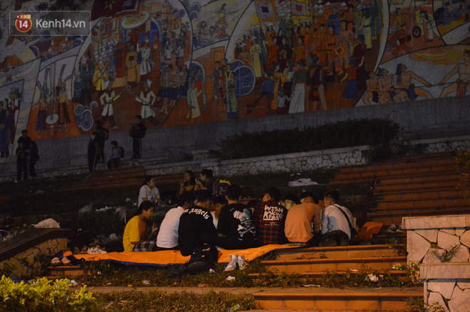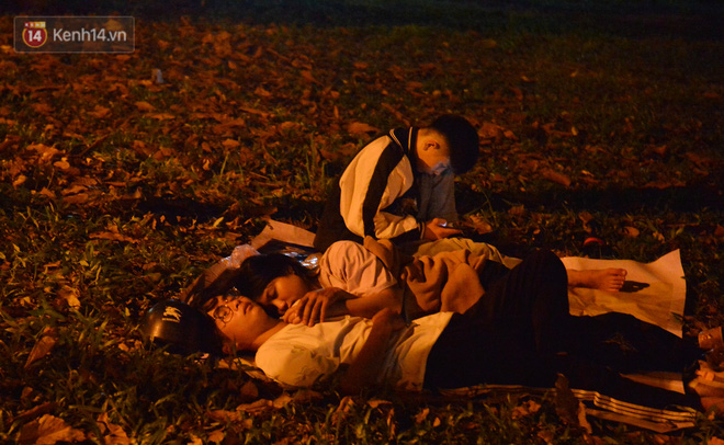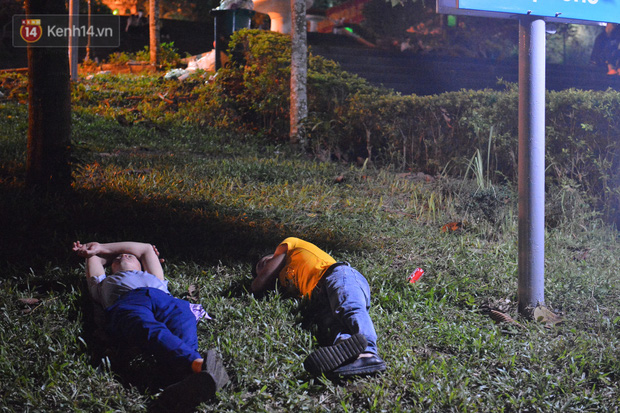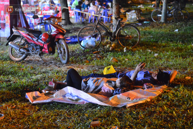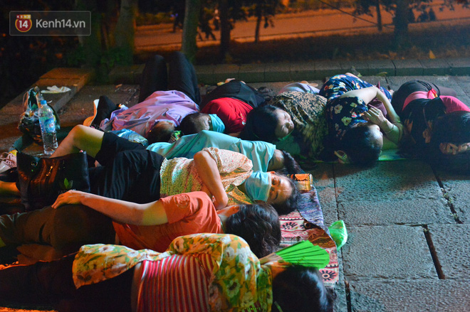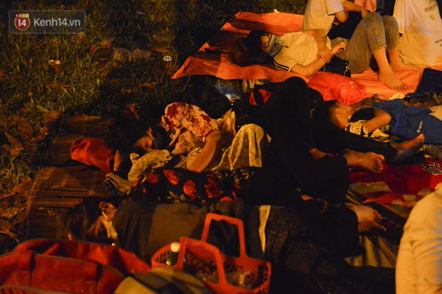 Hàng trăm du khách thập phương đã trải chiếu, bạt nằm vạ vật ngủ xung quanh khuôn viên đền Hùng để chờ đến giờ khai hội vào dâng hương.