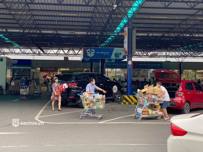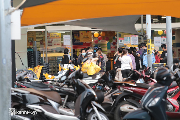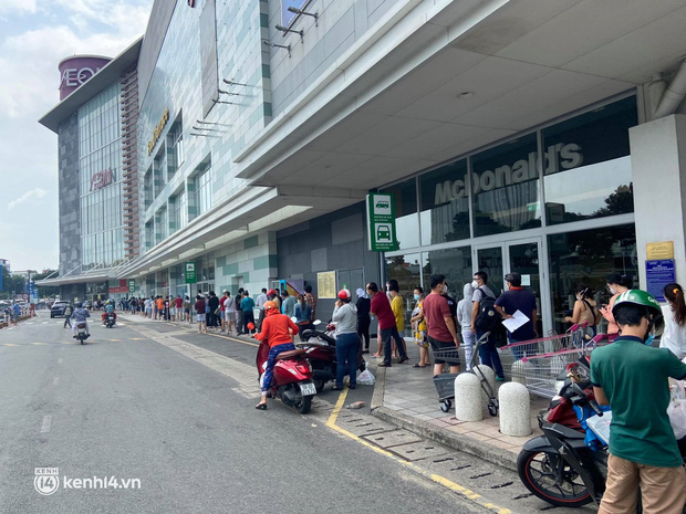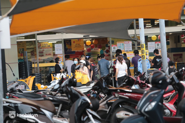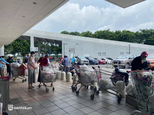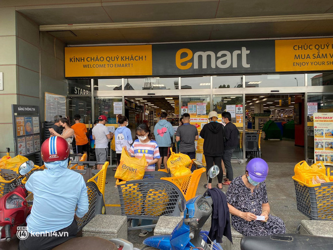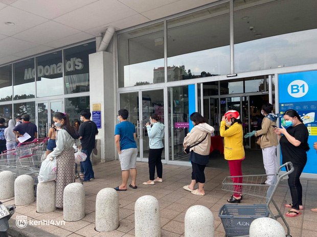 Các siêu thị bất ngờ đông đúc khiến hàng trăm người xếp hàng dài trước cửa và chờ ngoài cổng. Có siêu thị thông báo 60 phút mới nhận khách mới vào để đảm bảo giãn cách bên trong.
