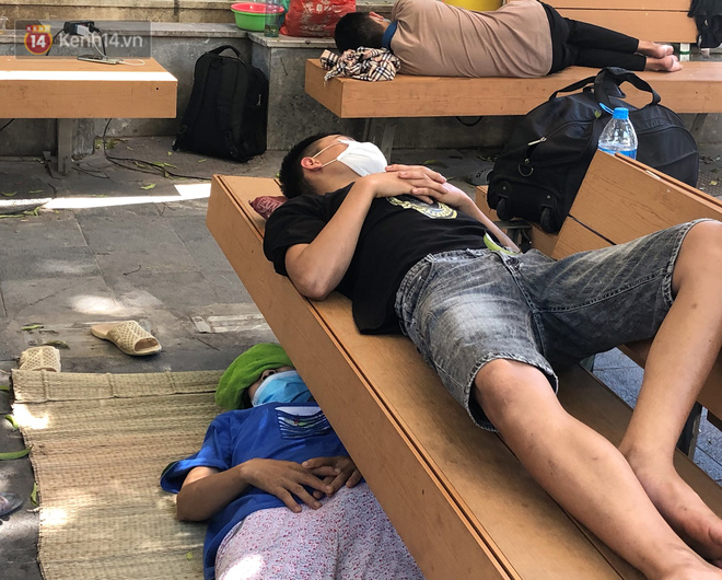 22/06/2021 00:54Ảnh: Người thân bệnh nhân nằm vật vờ tại bệnh viện Bạch Mai dưới cái nóng gần 50 độ C