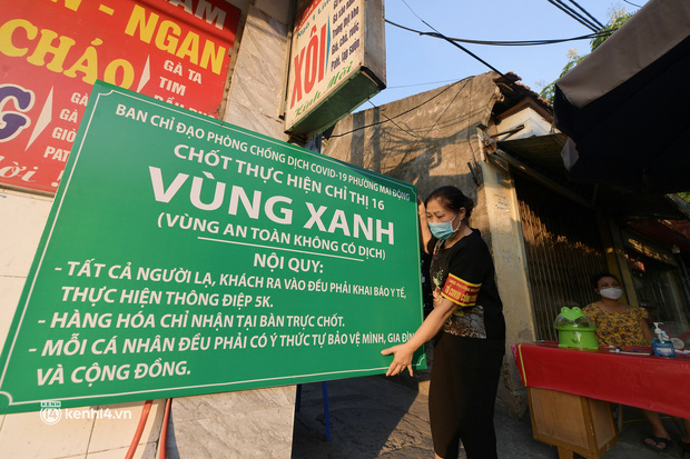 Bà Nguyễn Thị Hạnh Lan - Bí thư chi bộ khu 10, phường Mai Động cho biết, được sự đồng ý của Đảng uỷ và UBND phường Mai Động, người dân đã tự lập nên các "vùng xanh" không có Covid-19.