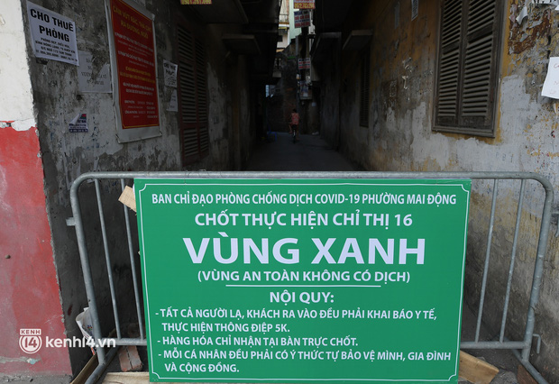 Phường Mai Động (quận Hoàng Mai, Hà Nội) đã thiết lập hàng chục "vùng xanh" an toàn. Đây là các khu dân cư không có dịch Covid-19. Các chốt được lập để kiểm soát, bảo vệ sự an toàn cho khu mình sinh sống, kiểm soát được người dân khi vừa ra khỏi nhà.