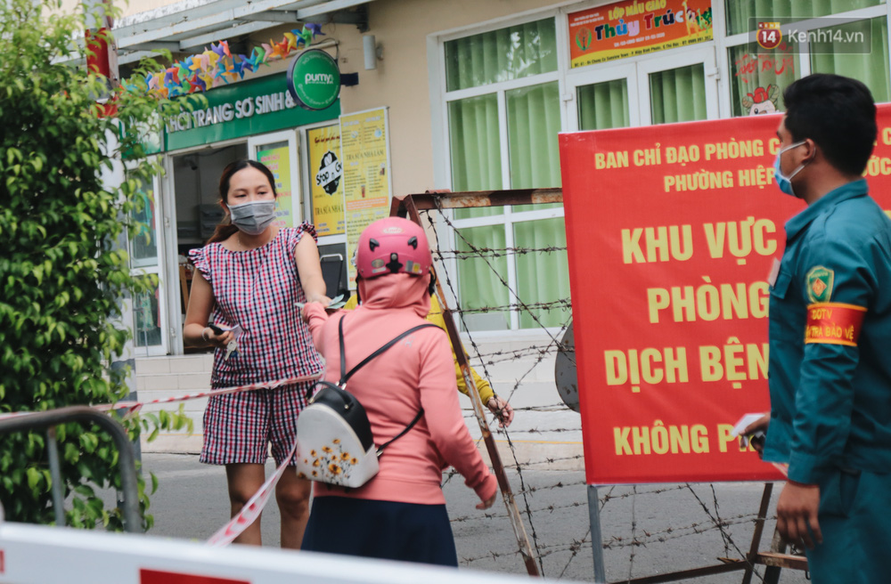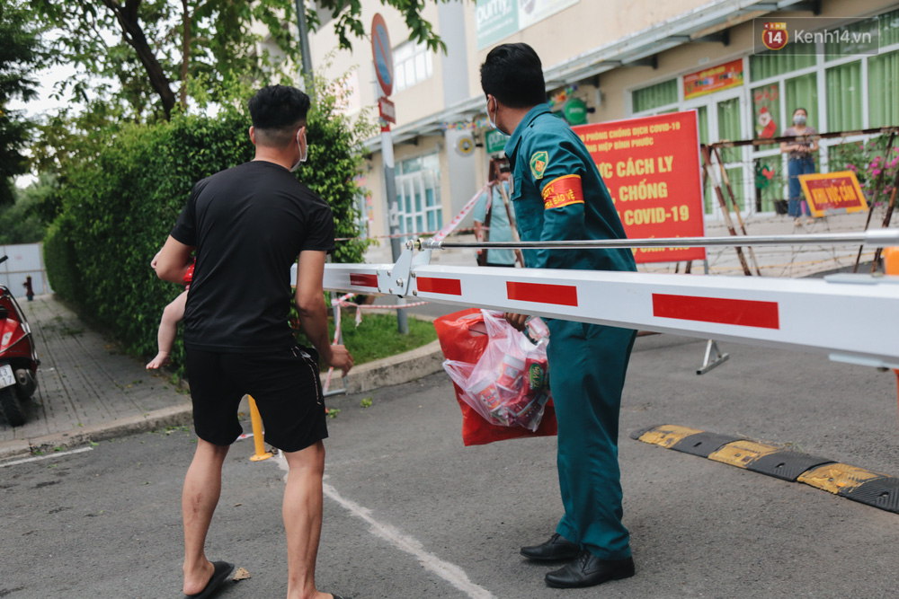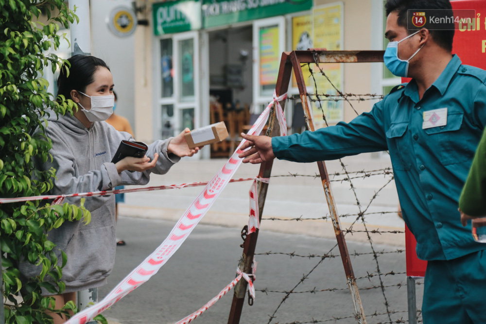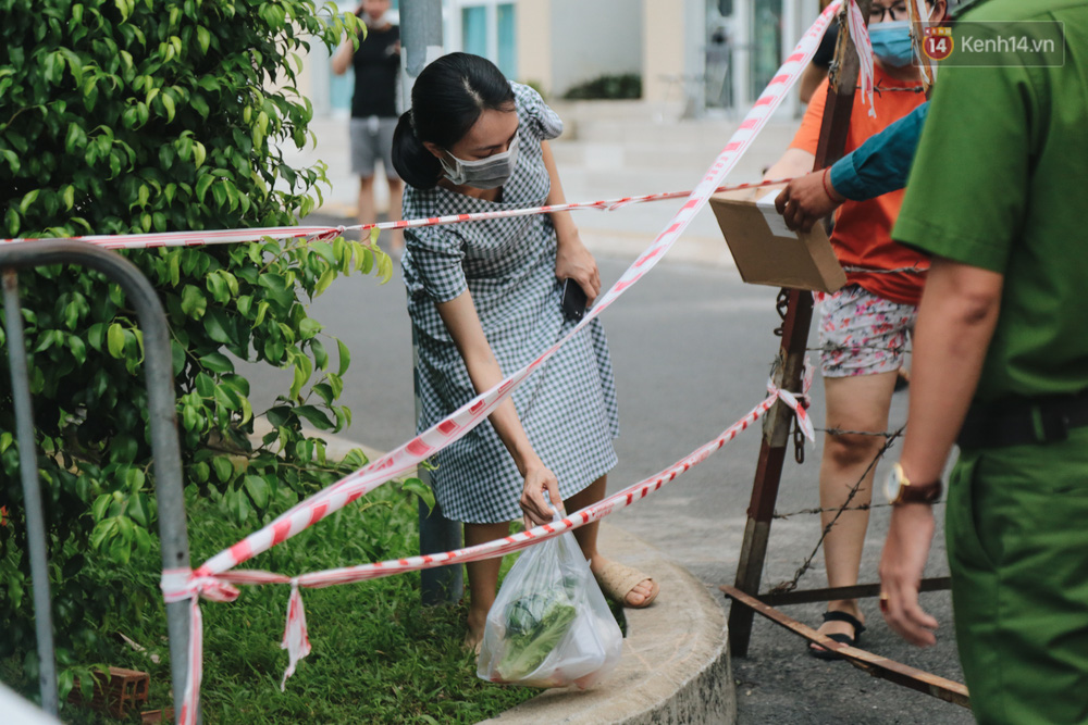 Cư dân bên trong khu cách ly muốn nhận hàng hoá đều phải đứng cách xa và được lực lượng chức năng hỗ trợ đưa vào. Nhiều cư dân đặt đồ ăn từ bên ngoài, khi shipper mang tới cũng phải đưa lực lượng chức năng để mang vào. Tất cả mọi người tại khu cách ly đều giữ khoảng cách tối thiếu 1m và liên tục rửa tay sát khuẩn sau khi tiếp tế thức ăn.
