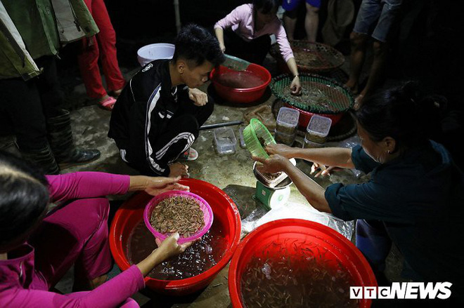 Hơn một tạ rươi thu hoạch trong 4 tiếng nhưng vớt lên bao nhiêu bán hết bấy nhiêu, mỗi đêm gia đình ông Tưởng ở Hải Dương thu về gần 50 triệu đồng.
