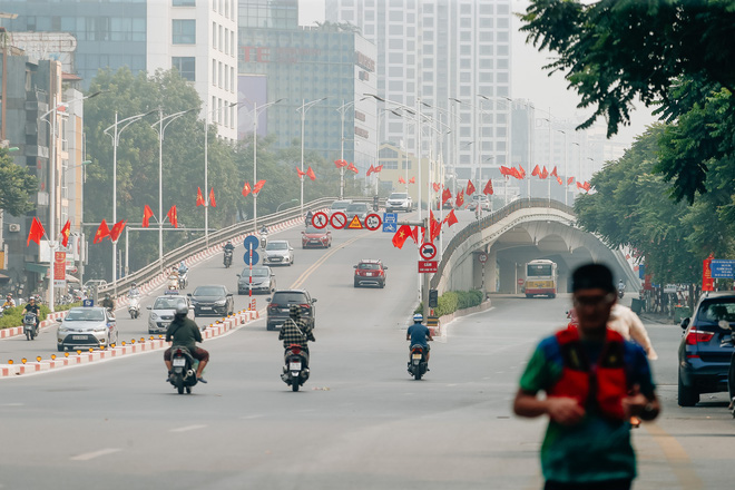 Sáng 2/9, nghỉ lễ Quốc khánh nên phố phường Hà Nội cũng vắng lặng hơn so với ngày thường. Không còn những dòng phương tiện nối dài trên phố, không còn những ngã tư ùn tắc giờ cao điểm... thay vào đó là một Hà Nội bình yên trong nắng sớm.