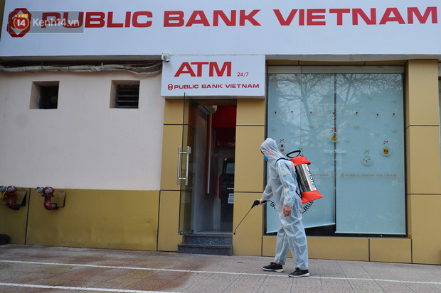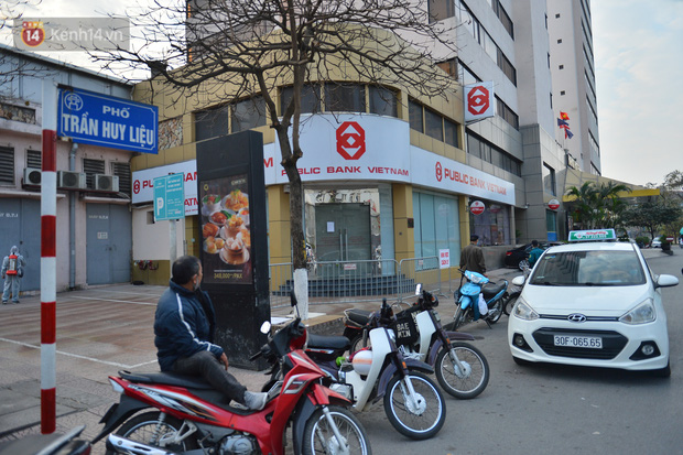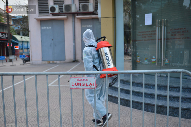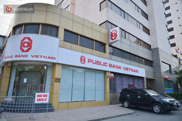 Ngay sau khi có thông tin 1 bệnh nhân mắc Covid-19, các lực lượng chức năng đã phong toả ngân hàng Public Bank tại D8, Trần Huy Liệu, Giảng Võ, Ba Đình.