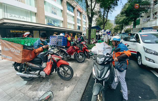 Theo anh Chương, đứng đợi cả tiếng đồng hồ tại TTTM Vincom mà chưa giao hết hàng. Sau khi hết sẽ đi giao chỗ khác tiếp. Anh chỉ giao hàng quanh quận 1 mà cả hàng trăm đơn hàng.