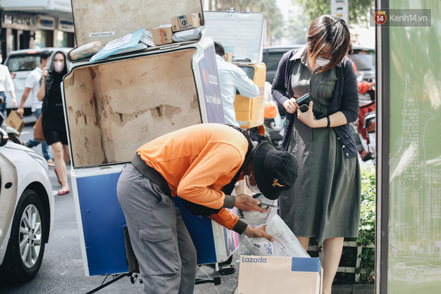 Gần đó, một nhân viên giao hàng cũng đang tất bật nhận gần cả trăm gói hàng từ nhân viên cửa hàng trong TTTM để vận chuyển đến cho khách. Shipper này cho biết, trong ngày sale mạnh thì anh nhận khoảng 300 đơn hàng, ngày bình thường thì ít hơn.