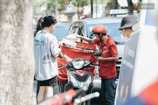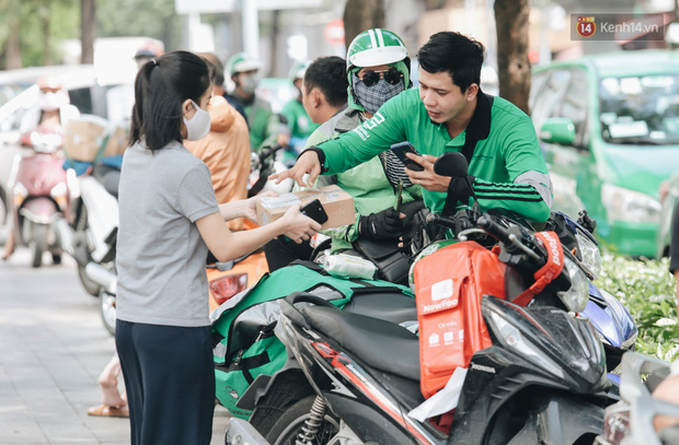 Anh Hoàng Chương (shipper 40 tuổi) đang đứng chờ giao hàng tại TTTM Vincom cho biết, mới buổi sáng mà anh đã nhận được 150 đơn hàng và có thể tăng thêm vào buổi chiều.