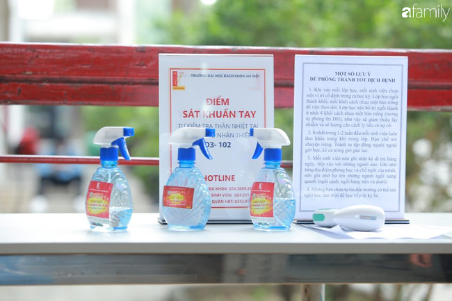Công tác phòng dịch để sinh viên quay lại trường đã được lãnh đạo các trường thực hiện từ những ngày trước. Tại trường Đại học Bách khoa, nhà trường đã tự chế tạo ra nước rửa tay để phát cho sinh viên. Mỗi sinh viên sẽ được phát một khẩu trang vải cùng 1 chai nước sát khuẩn.