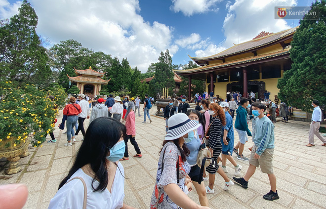 01/05/2021 20:44Ảnh: Thiền viện Trúc Lâm ở Đà Lạt chật kín du khách, nhiều người mặc quần ngắn, không đeo khẩu trang