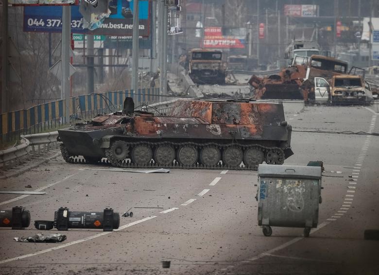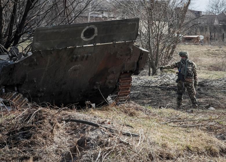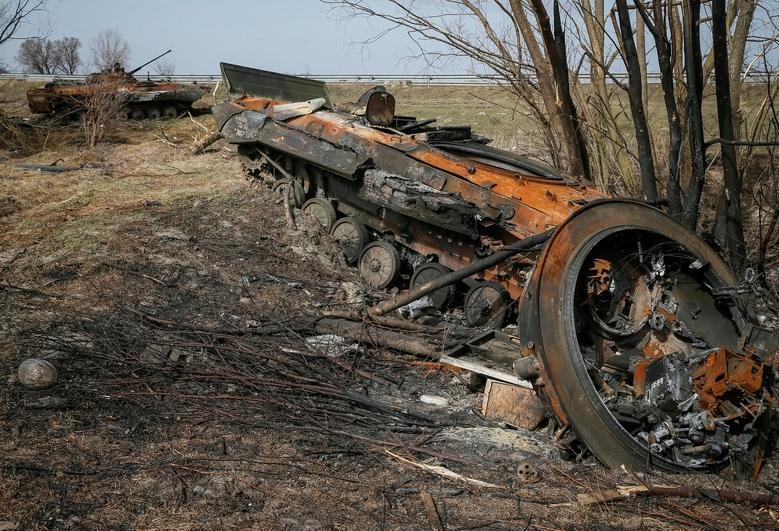 Nhiều khí tài và phương tiện quân sự của Nga được nhìn thấy nằm rải rác hầu khắp trên các con đường mòn của Ukraine sau gần hai tháng Nga mở chiến dịch quân sự đặc biệt.