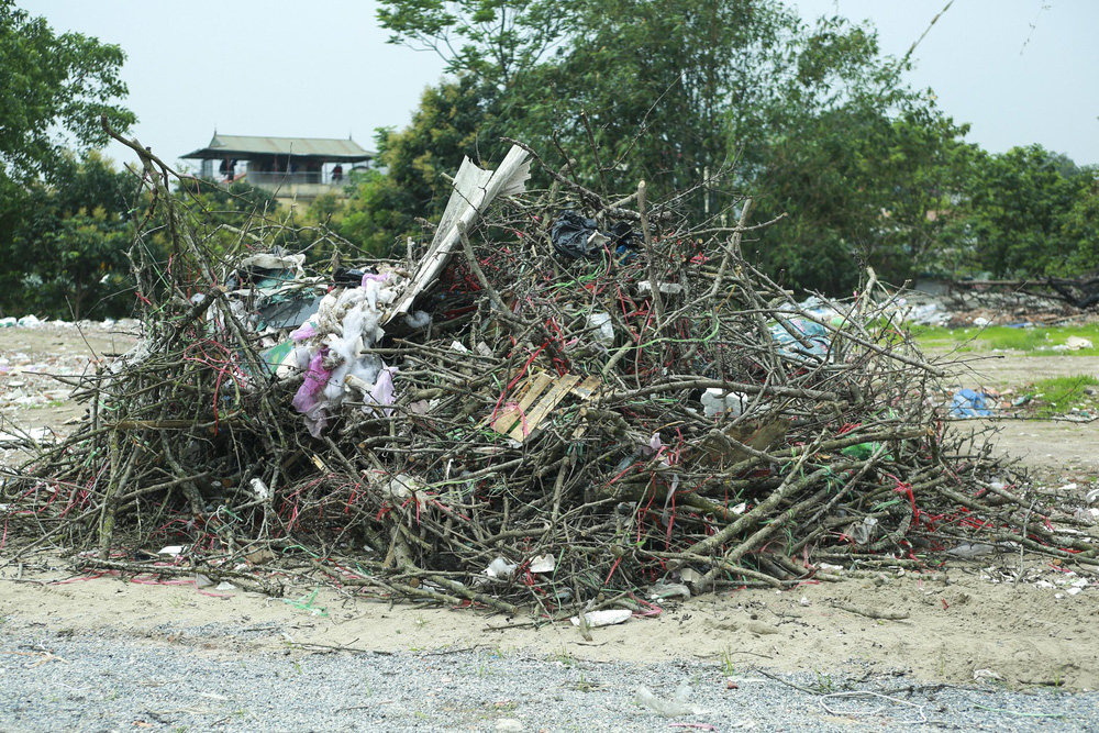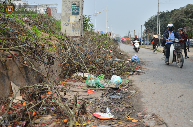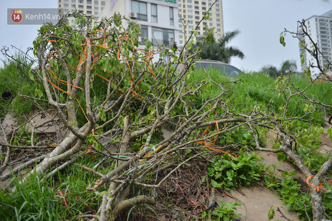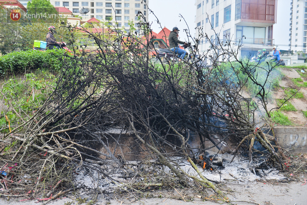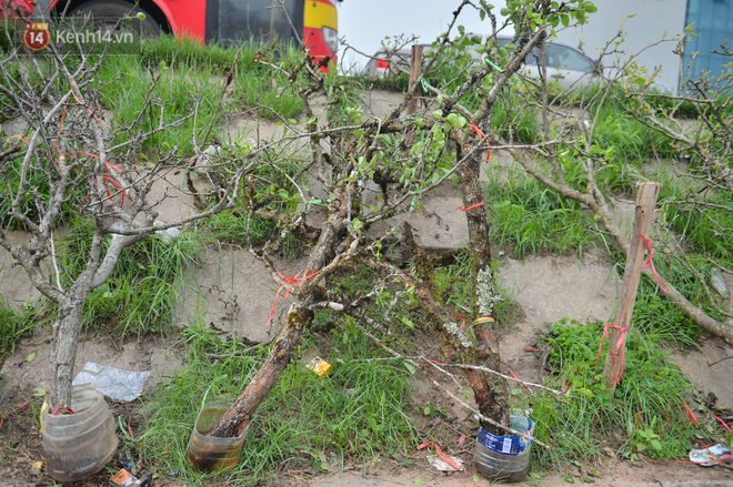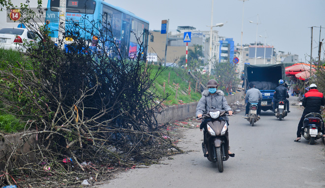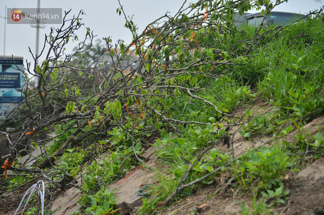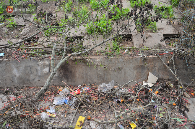 Những cành hoa lê tiền triệu do không bán được đã khô héo tiểu thương đã chất thành đống, ngổn ngang trên triền đê Âu Cơ.