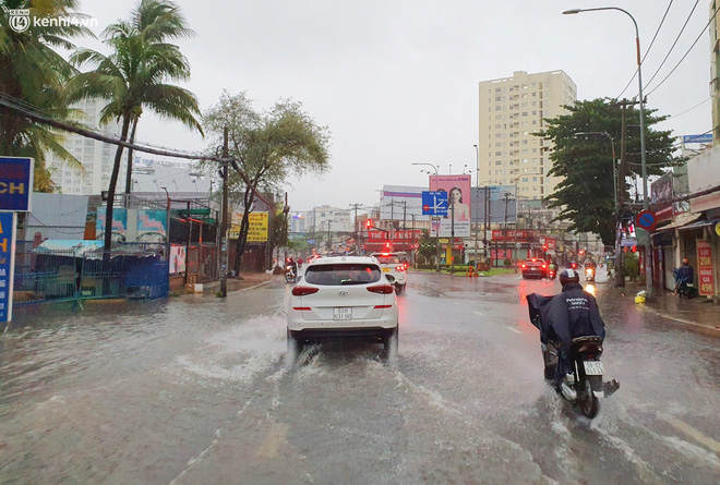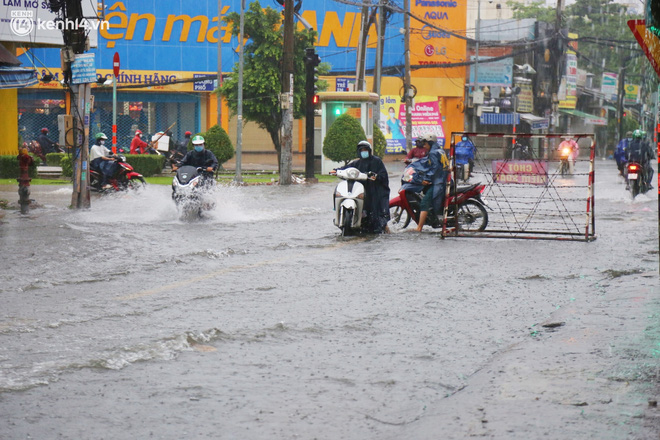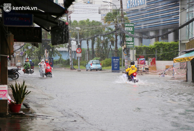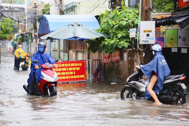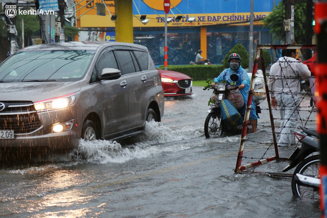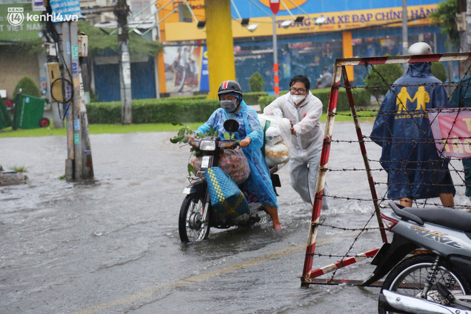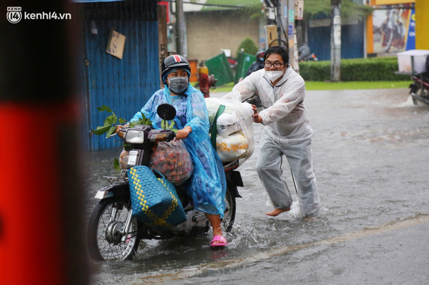 Tại một chốt kiểm soát dịch Covid-19 trên đường Ung Văn Khiêm, vì đoạn đường ngập khá sâu dẫn đến tình trạng một số người dân chạy xe bị té ngã, lực lượng chức năng tại chốt kiểm soát dịch đã nhanh chóng hỗ trợ, đội mưa đẩy xe chết máy, giúp đỡ người dân di chuyển qua đoạn đường ngập.