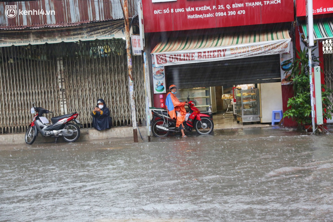 Theo ghi nhận của PV chiều 15/7, tại một số tuyến đường ở quận Bình Thạnh như Ung Văn Khiêm, Nguyễn Gia Trí, Nguyễn Xí, Xô Viết Nghệ Tĩnh..., ngập nặng sau cơn mưa lớn kéo dài hơn 1 giờ đồng hồ.