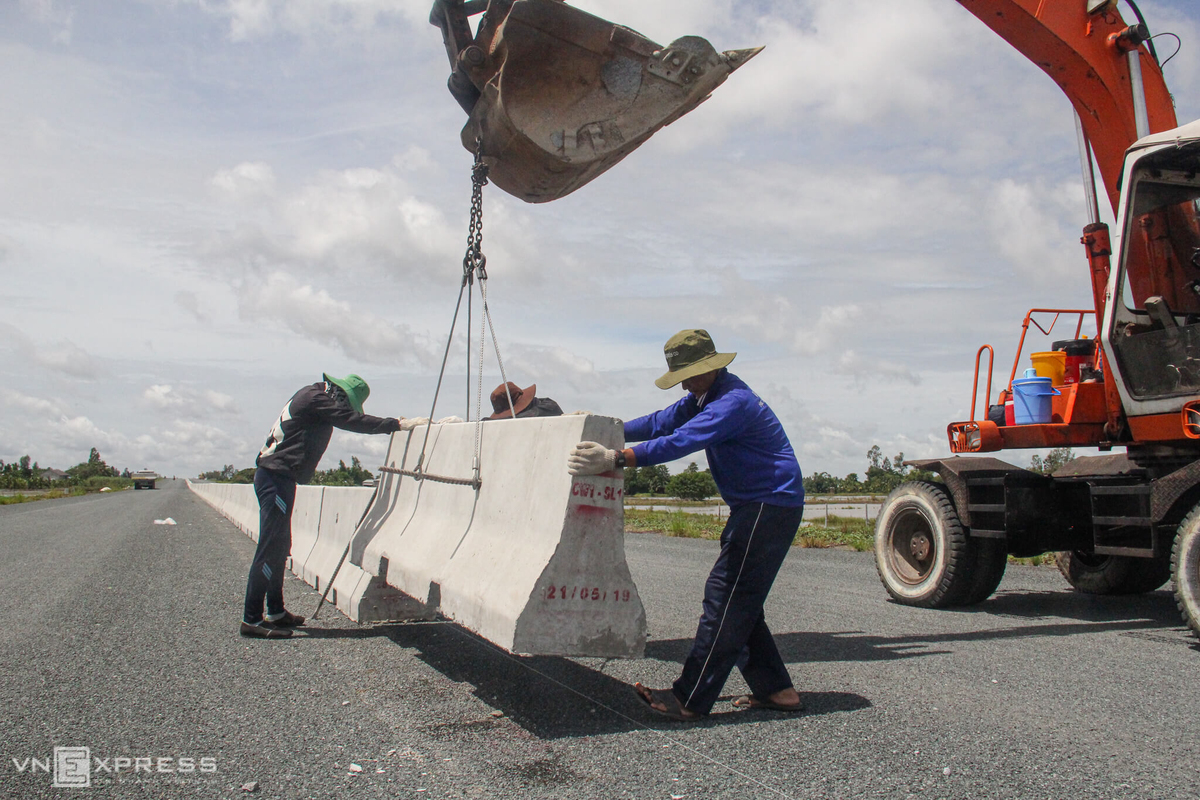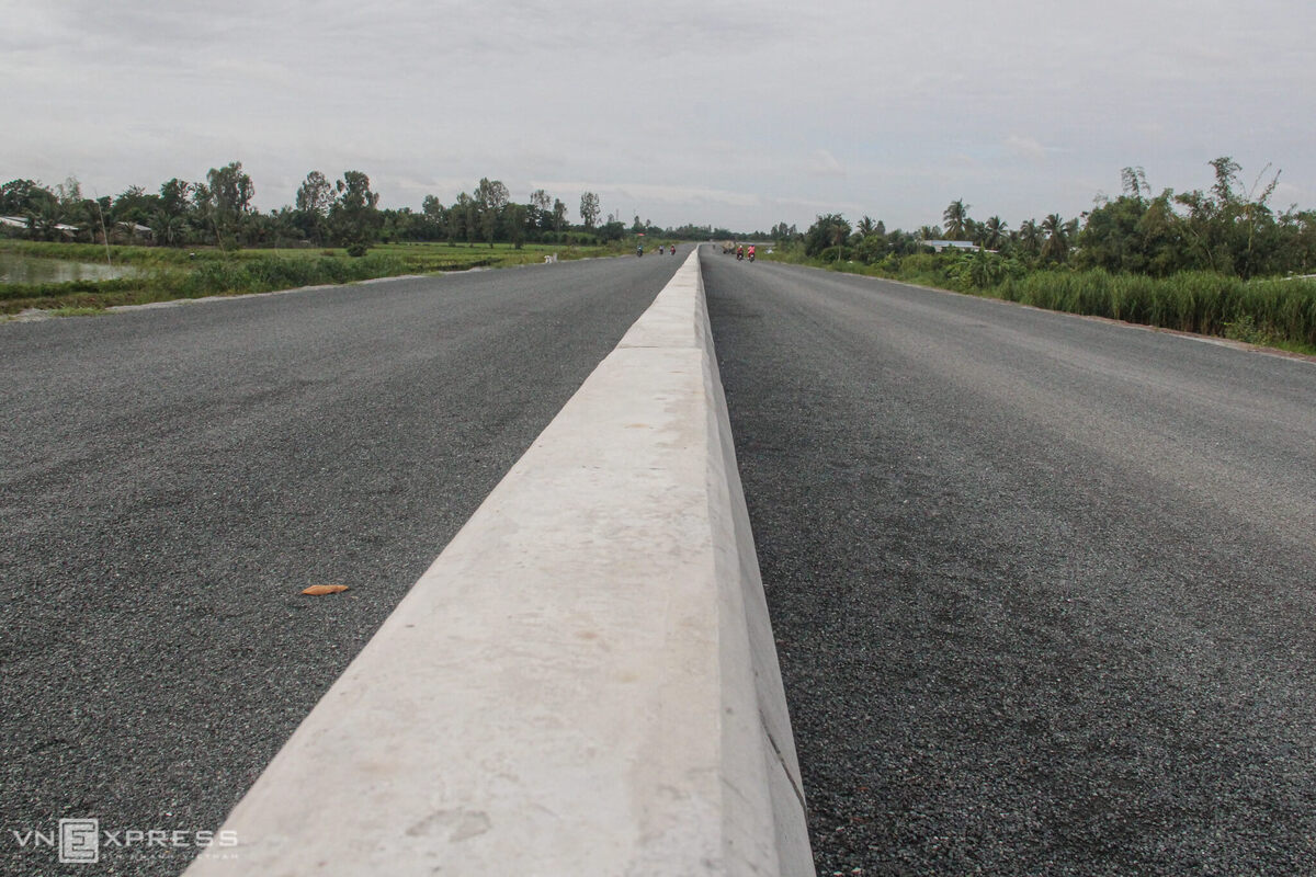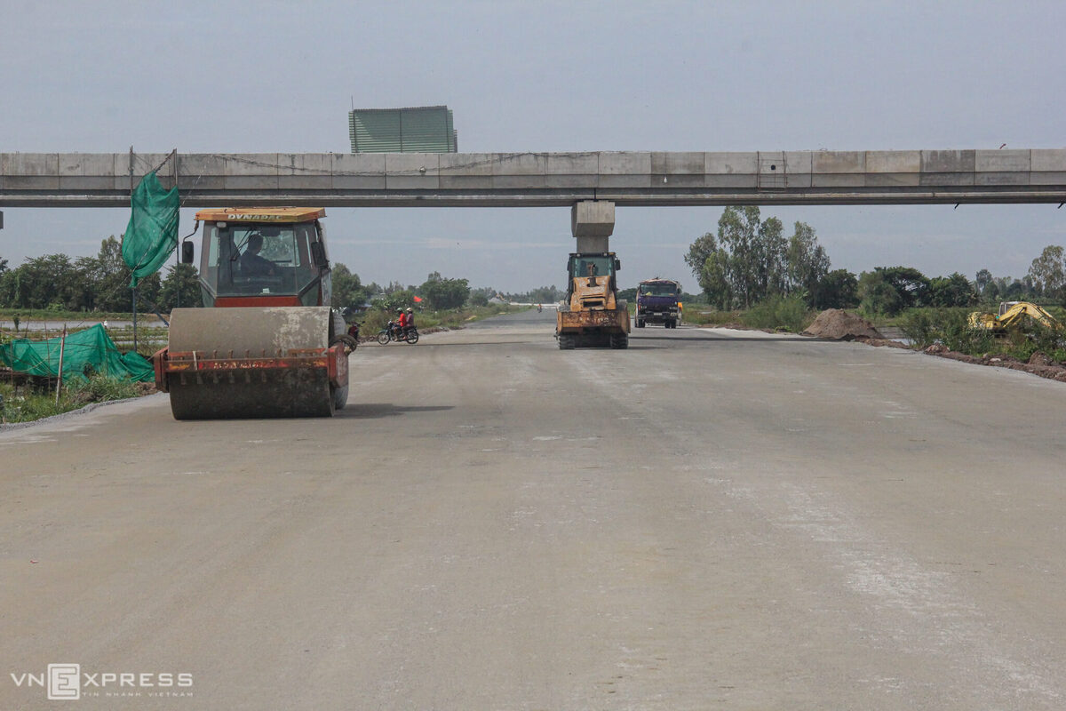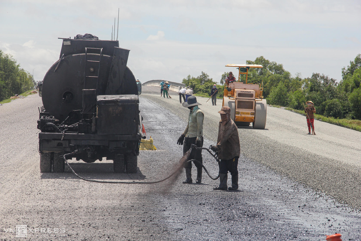 Ông Diệp Bảo Tuấn, Phó tổng giám đốc Tổng công ty Đầu tư phát triển và quản lý hạ tầng giao thông Cửu Long (Bộ Giao thông Vận tải) cho biết, mưa nhiều những ngày qua đã ảnh hưởng đến tiến độ công trình. Toàn tuyến còn khoảng 5 km mặt đường chưa được thảm nhựa.