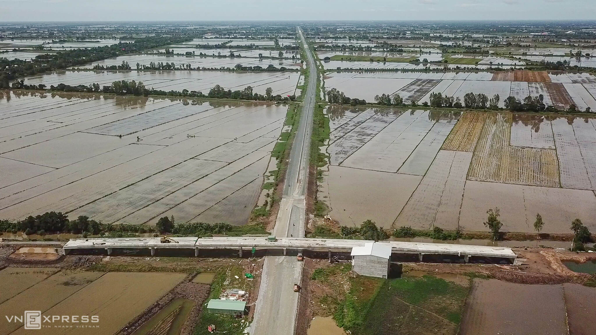 Nút giao giữa khu vực cầu Bốn Tổng và cầu Láng Sen, trên tuyến cao tốc Lộ Tẻ - Rạch Sỏi đã thành hình và đang được thi công.