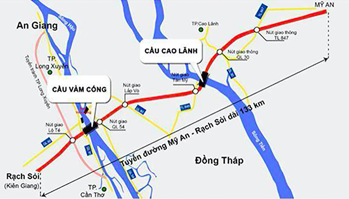 Tuyến Lộ Tẻ - Rạch Sỏi là một phần của dự án Kết nối trung tâm đồng bằng Mekong, gồm cầu Cao Lãnh, cầu Vàm Cống và đường nối hai cầu, dài 28 km, vốn đầu tư 19.500 tỷ đồng, trở thành tuyến cao tốc Bắc - Nam phía Tây vùng Đồng bằng sông Cửu Long.