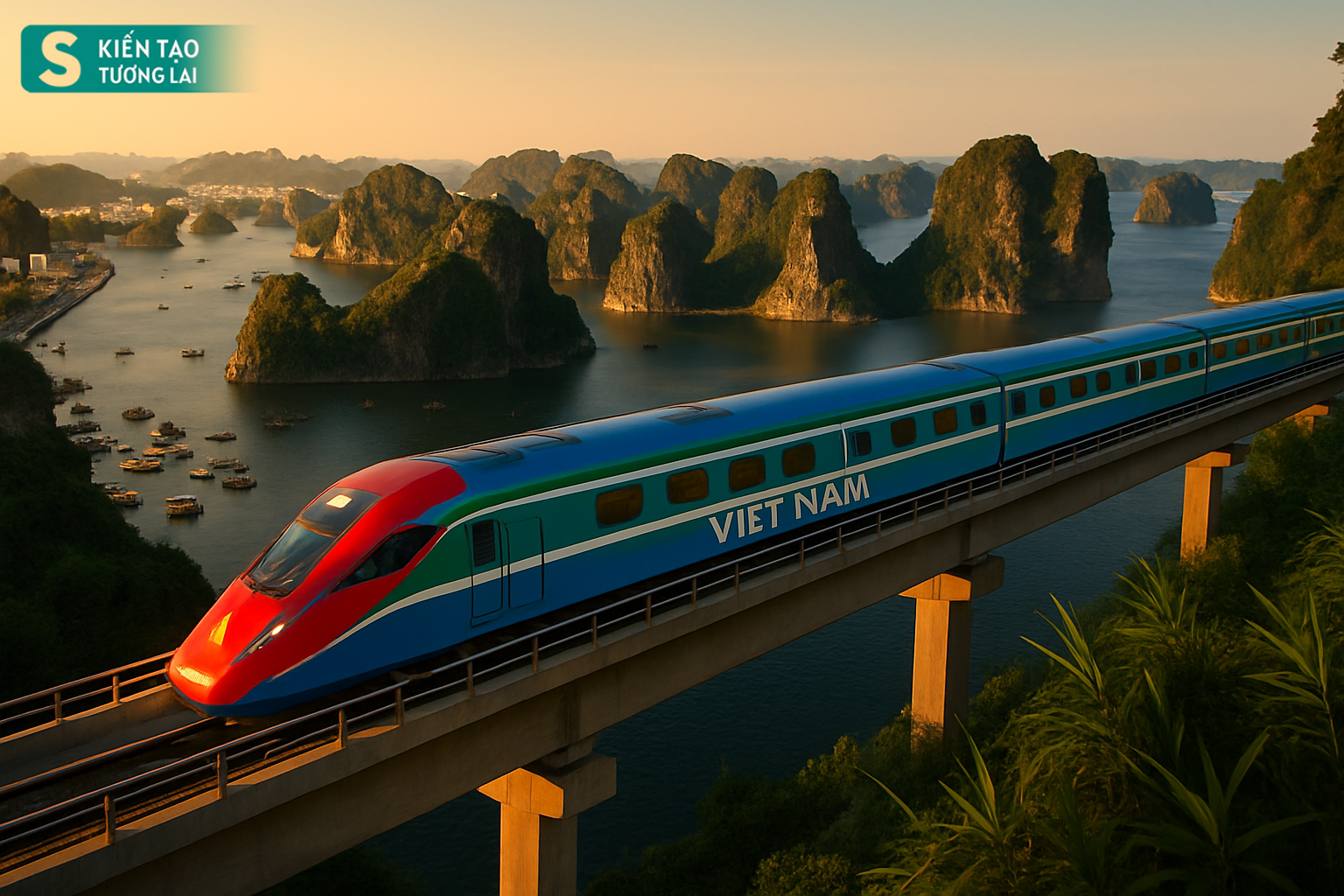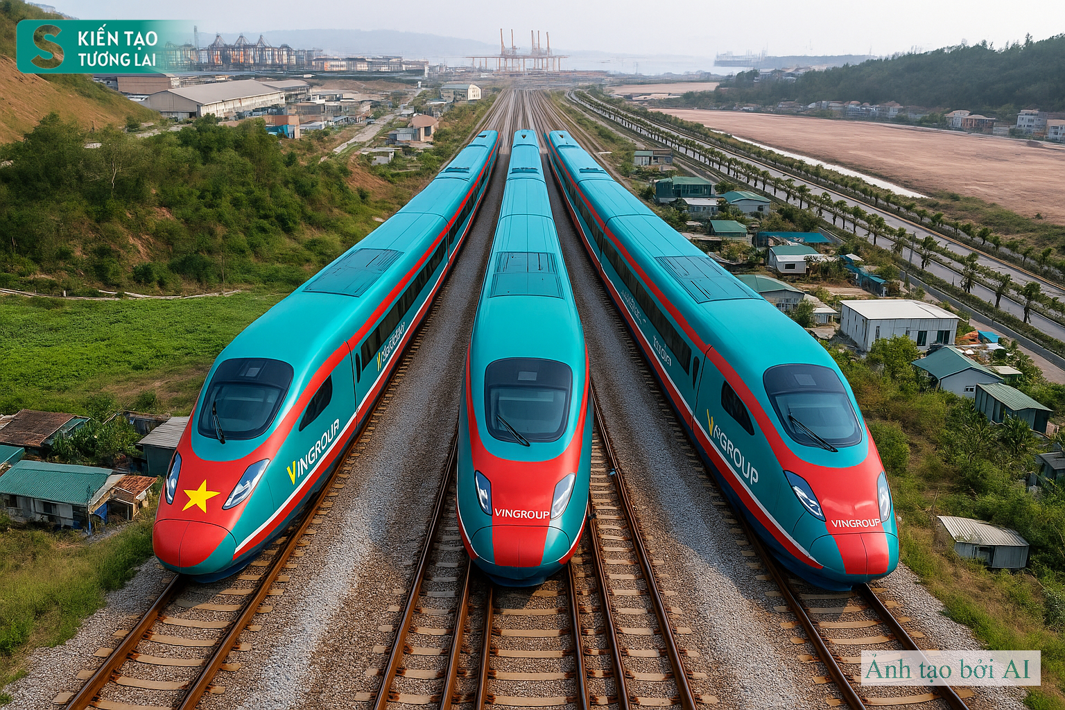 Dự án đường sắt tốc độ cao 300km/h từ Hà Nội đi Hạ Long, Quảng Ninh mới đang ở giai đoạn đề xuất và xem xét thông qua, chưa có bản vẽ thiết kế toàn tuyến và chưa có thiết kế chi tiết đoàn tàu. Dưới đây là những hình ảnh viễn tưởng do ứng dụng AI sáng tạo ra dựa trên những hình ảnh từ thực địa của dự án đường sắt cao tốc Yên Viên-Hạ Long xây dựng gần 20 năm dang dở.