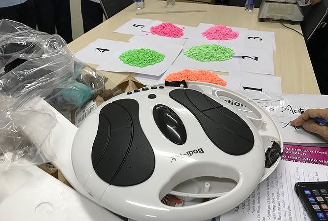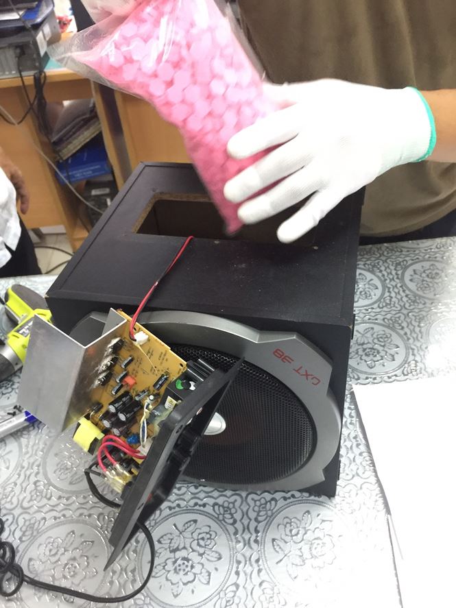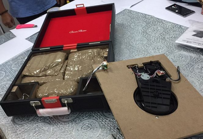 Hơn 14kg ma túy các loại được nguỵ trang tinh vi trong các vách thùng carton bao bì, trong ruột máy hát dĩa, trong túi treo đồ bằng vải, dưới đáy máy lọc nước, trong ruột máy massage chân, và trong ruột loa điện tử.