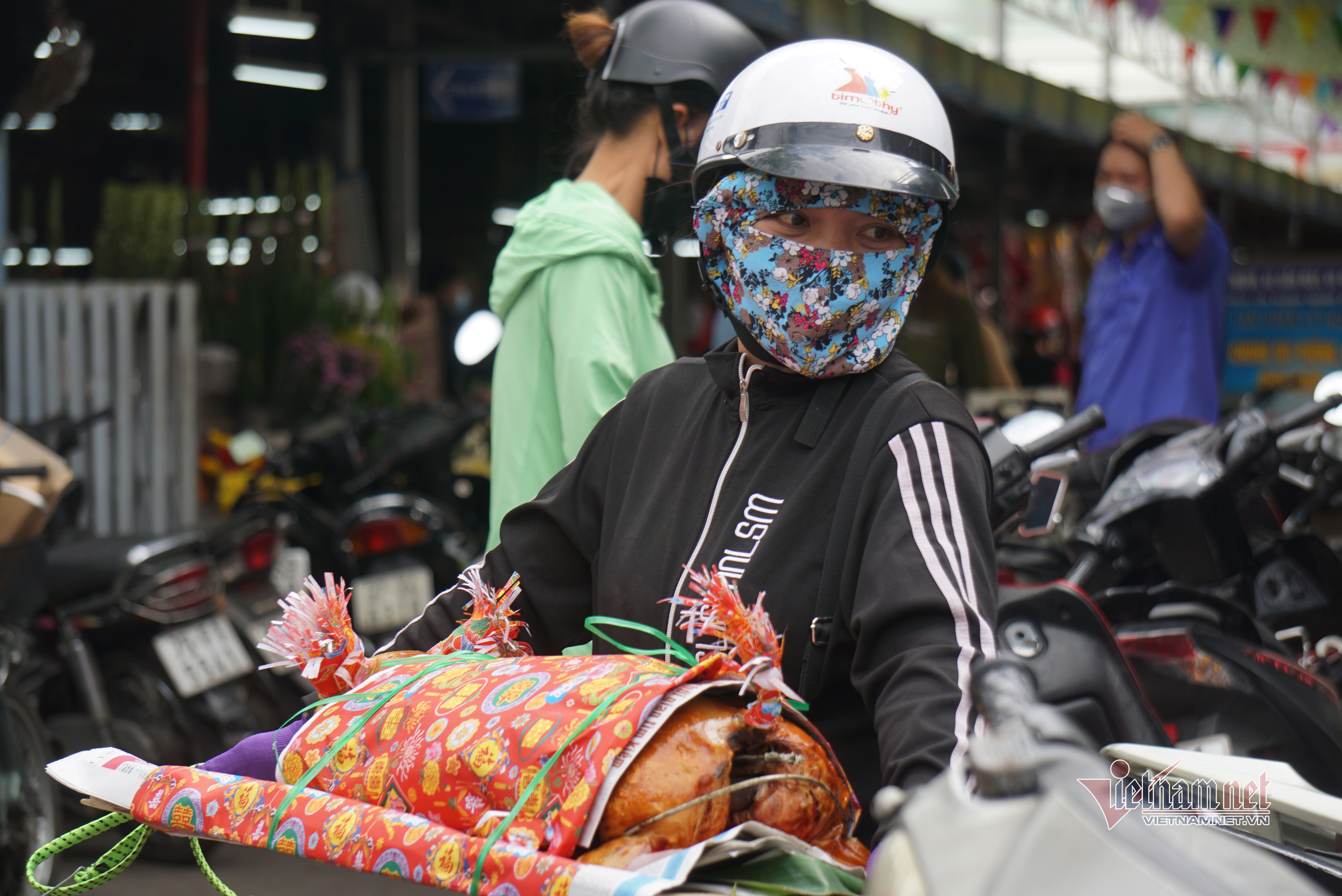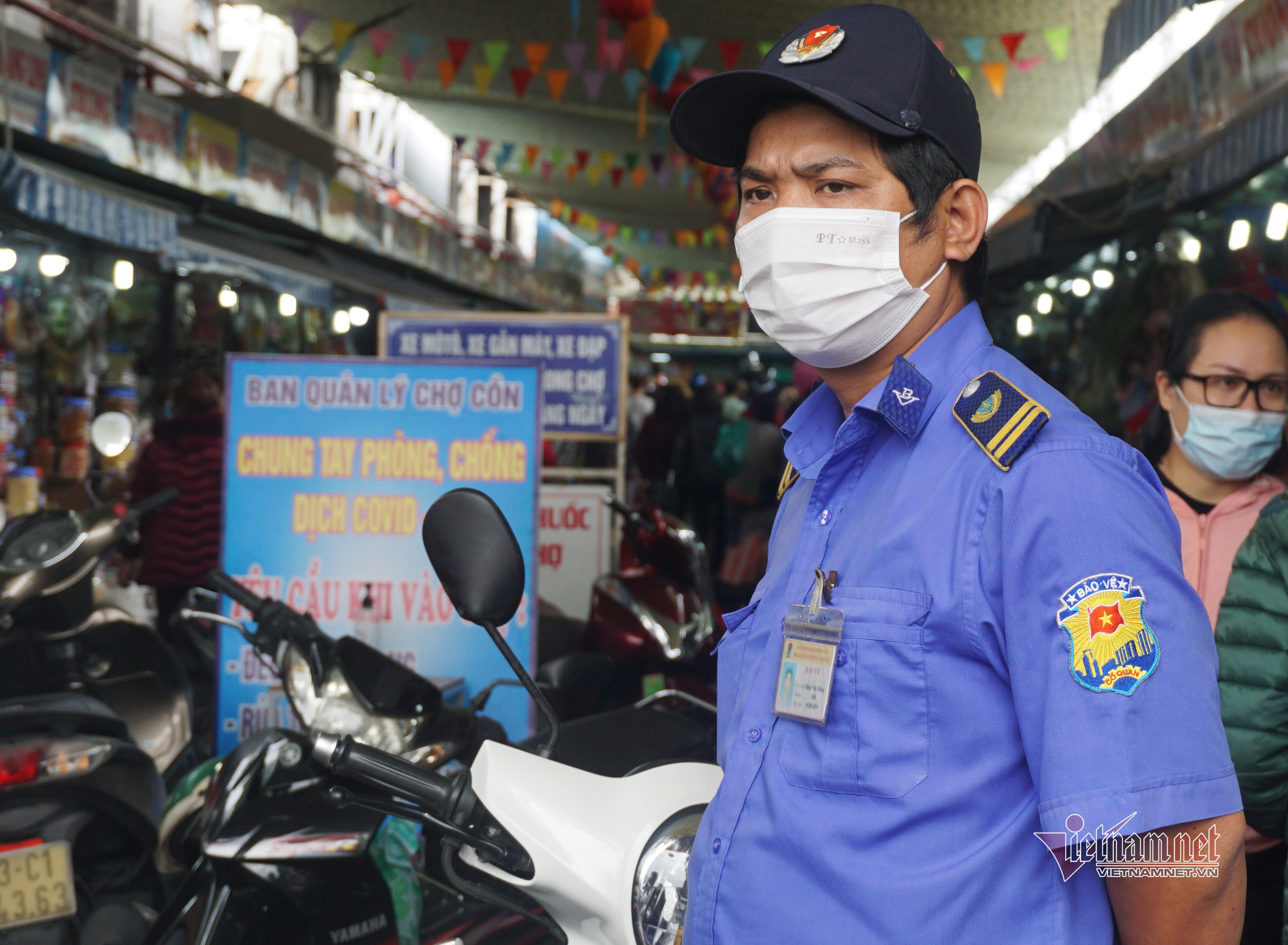 Tại chợ Cồn được bố trí các cổng kiểm soát nhắc nhở người dân vào chợ phải đeo khẩu trang.