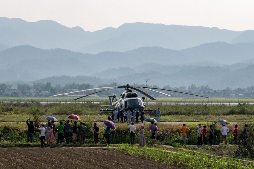 Tại Lễ kỷ niệm 70 năm Chiến thắng Điện Biên Phủ ngày 7/5, 11 trực thăng của Không quân nhân dân Việt Nam sẽ thực hiện nhiệm vụ bay biểu diễn kéo cờ Đảng, cờ Tổ quốc. Trước đó vào ngày 6/5, người dân đội nắng nhiều giờ ngắm nhìn lực lượng Không quân làm nhiệm vụ và những chiếc trực thăng tại Cảng hàng không Điện Biên Phủ.