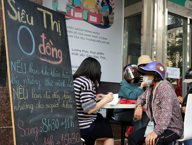 Từ ngày 13/4 một tập đoàn đóng tại khách sạn Grand Plaza (Trần Duy Hưng - Hà Nội) đã mở cửa "siêu thị 0 đồng" hay còn gọi là "siêu thị hạnh phúc" giúp người nghèo, người gặp khó khăn trong lúc dịch COVID-19 có những bữa ăn no, ngon.