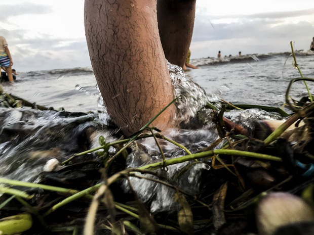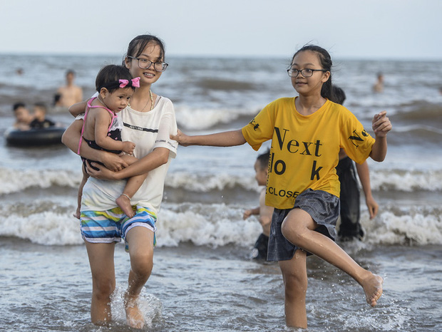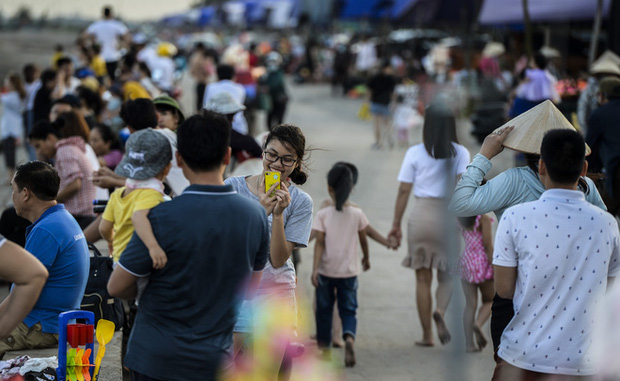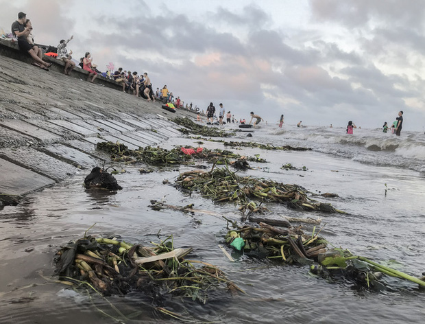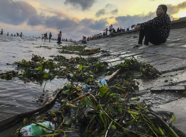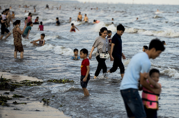 Bước sang ngày thứ 3 dịp nghỉ lễ 30/4 và 1/5, bãi biển Quất Lâm đông kín du khách tắm biển, vui chơi nhưng nhiều người cảm thấy ngao ngán khi lượng bèo, rác dạt vào bờ biển nhiều.