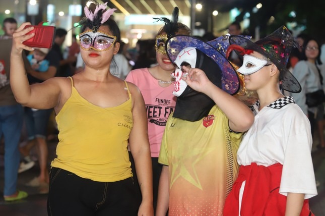 Dòng người đông đúc với những bộ cánh độc đáo, bắt mắt cùng đổ về phố đi bộ Nguyễn Huệ khiến cả khu phố trung tâm trở nên vô cùng sôi động, nhộn nhịp trong đêm hội hóa trang.