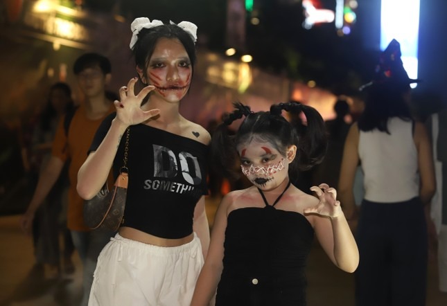 01/11/2024 21:01Bạn trẻ được vây quanh chụp ảnh với màn hóa trang ấn tượng đêm Halloween