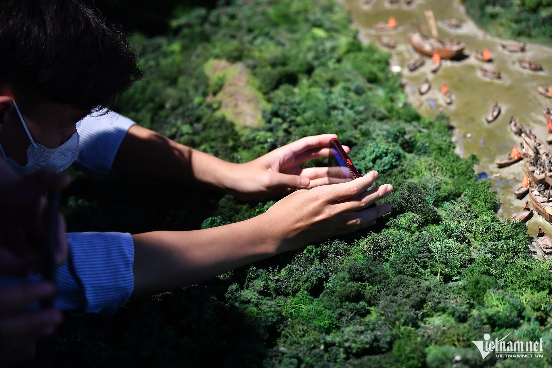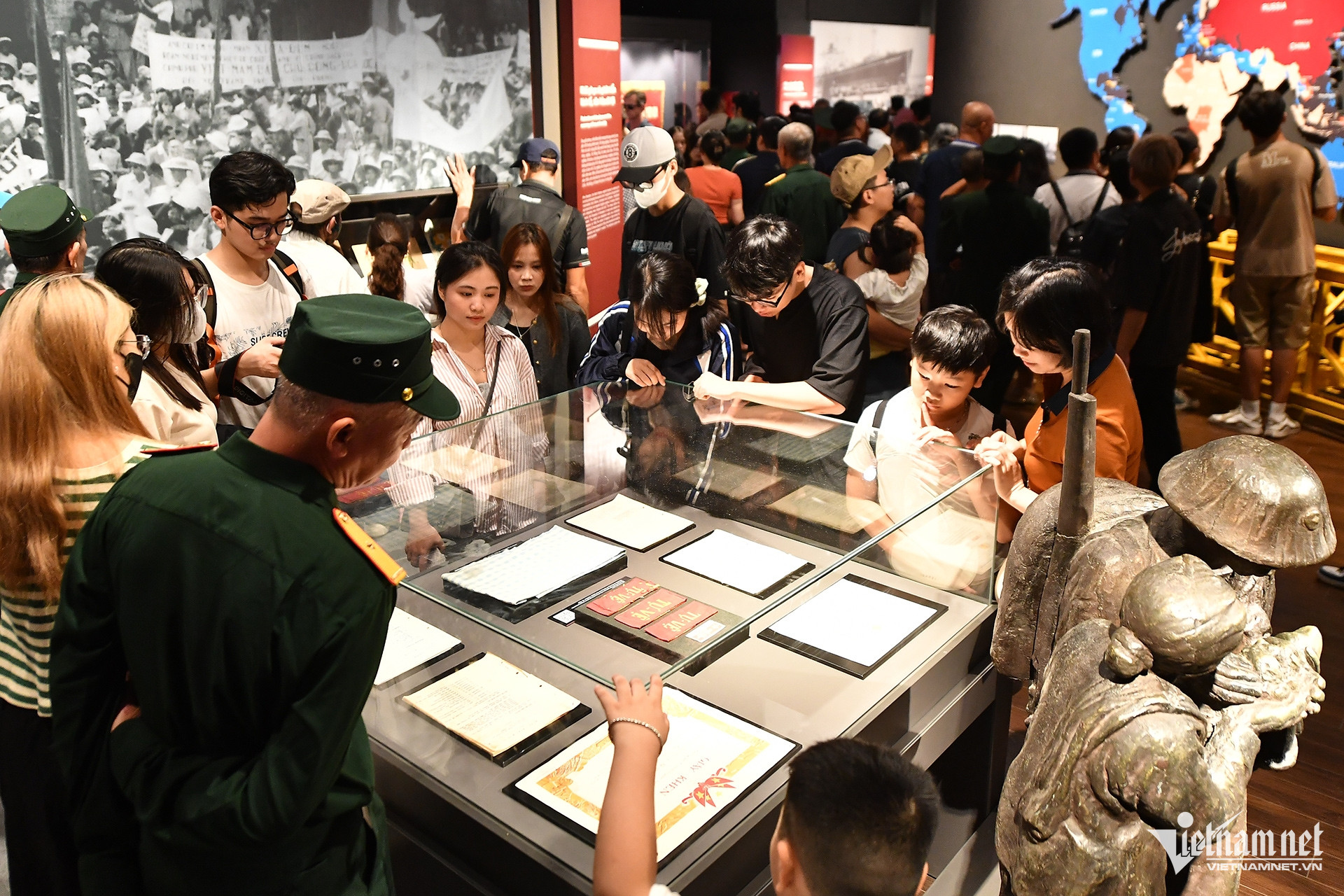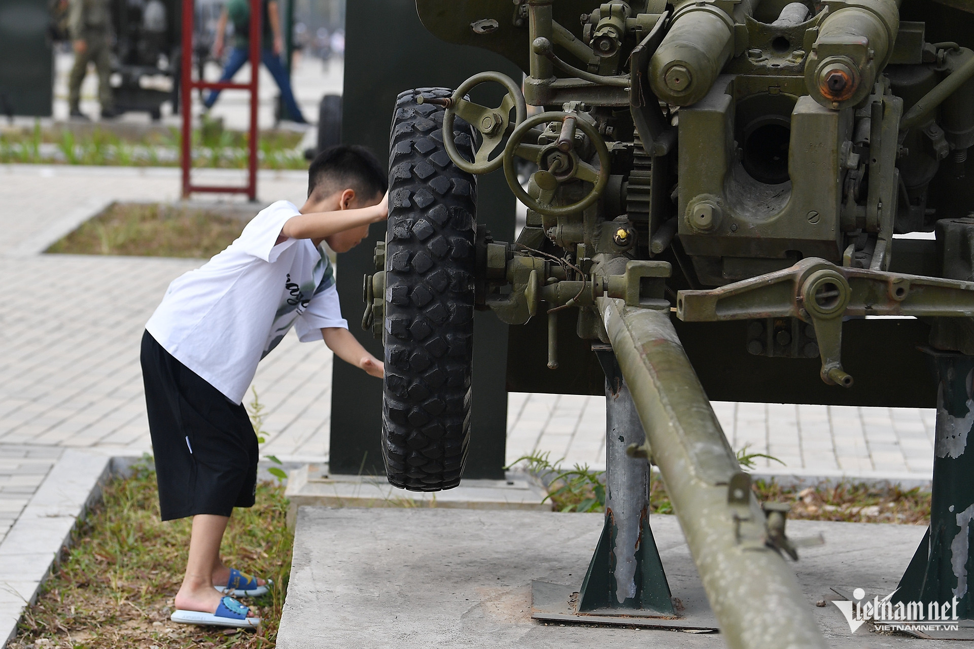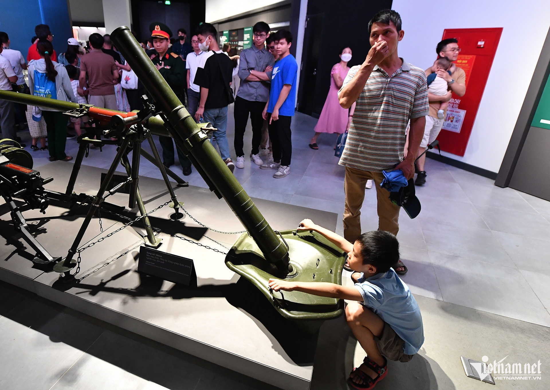 Sáng 16/11, Bảo tàng Lịch sử Quân sự Việt Nam lại lâm vào cảnh quá tải sau 3 tuần mở cửa miễn phí. Nhiều trẻ nhỏ sờ, nghịch hiện vật mà không được người lớn đi cùng ngăn cản.