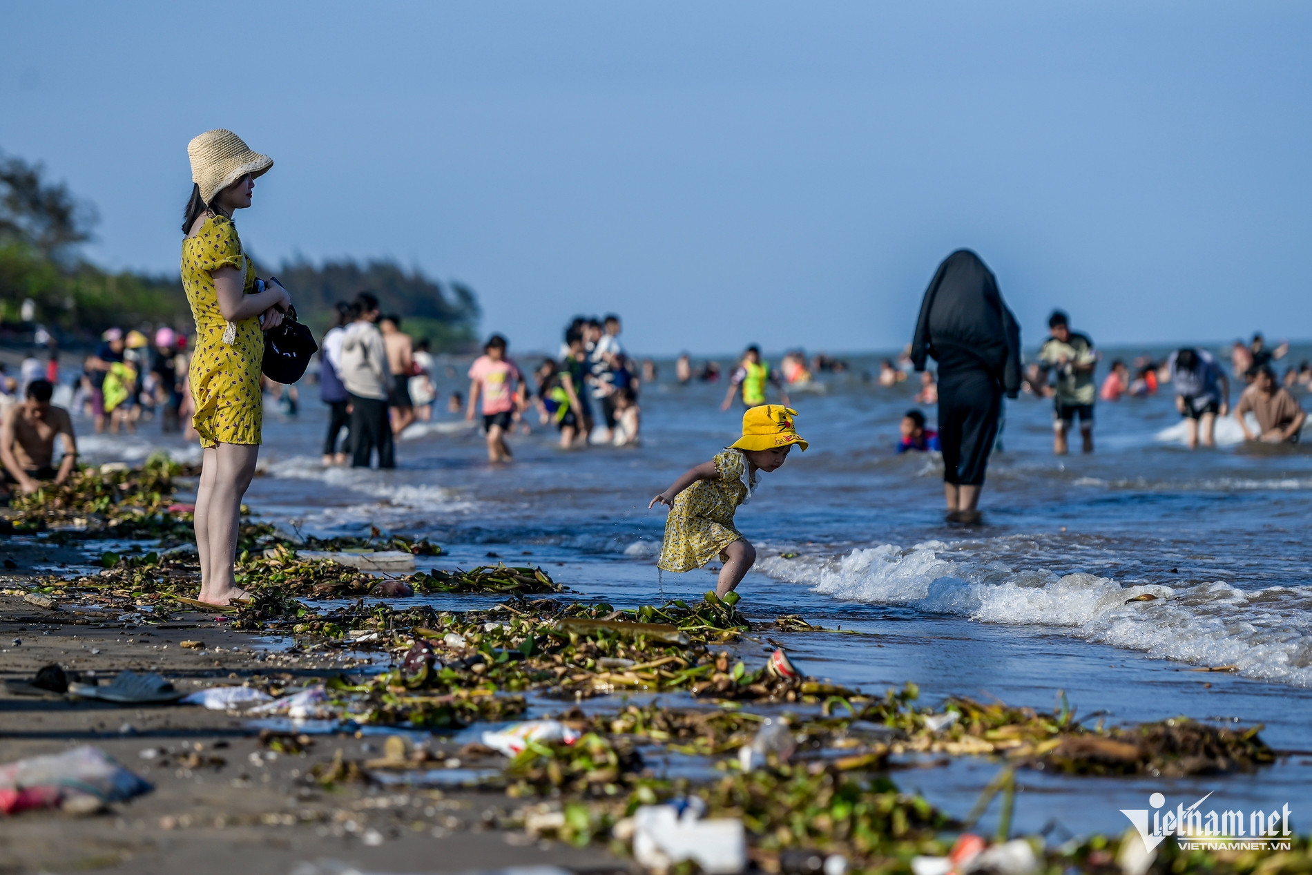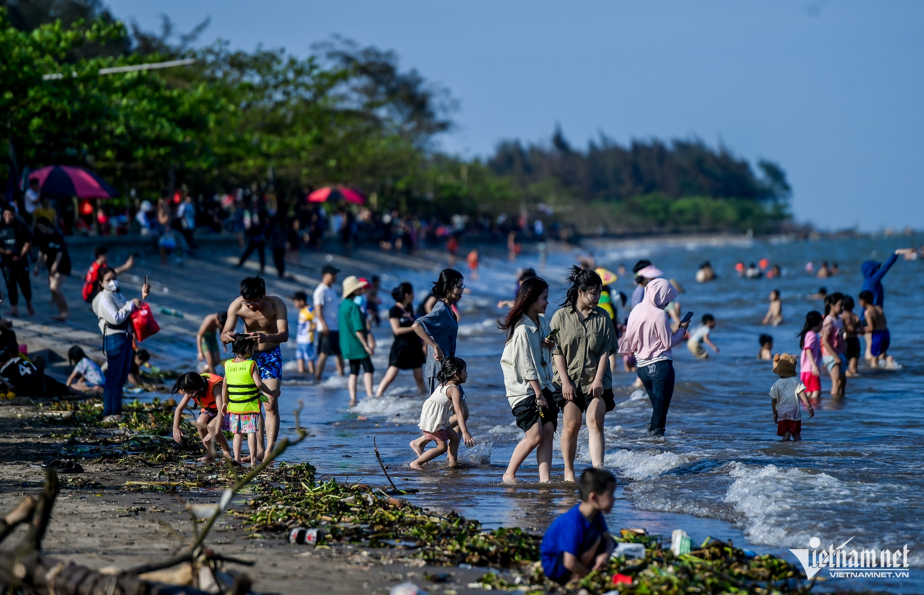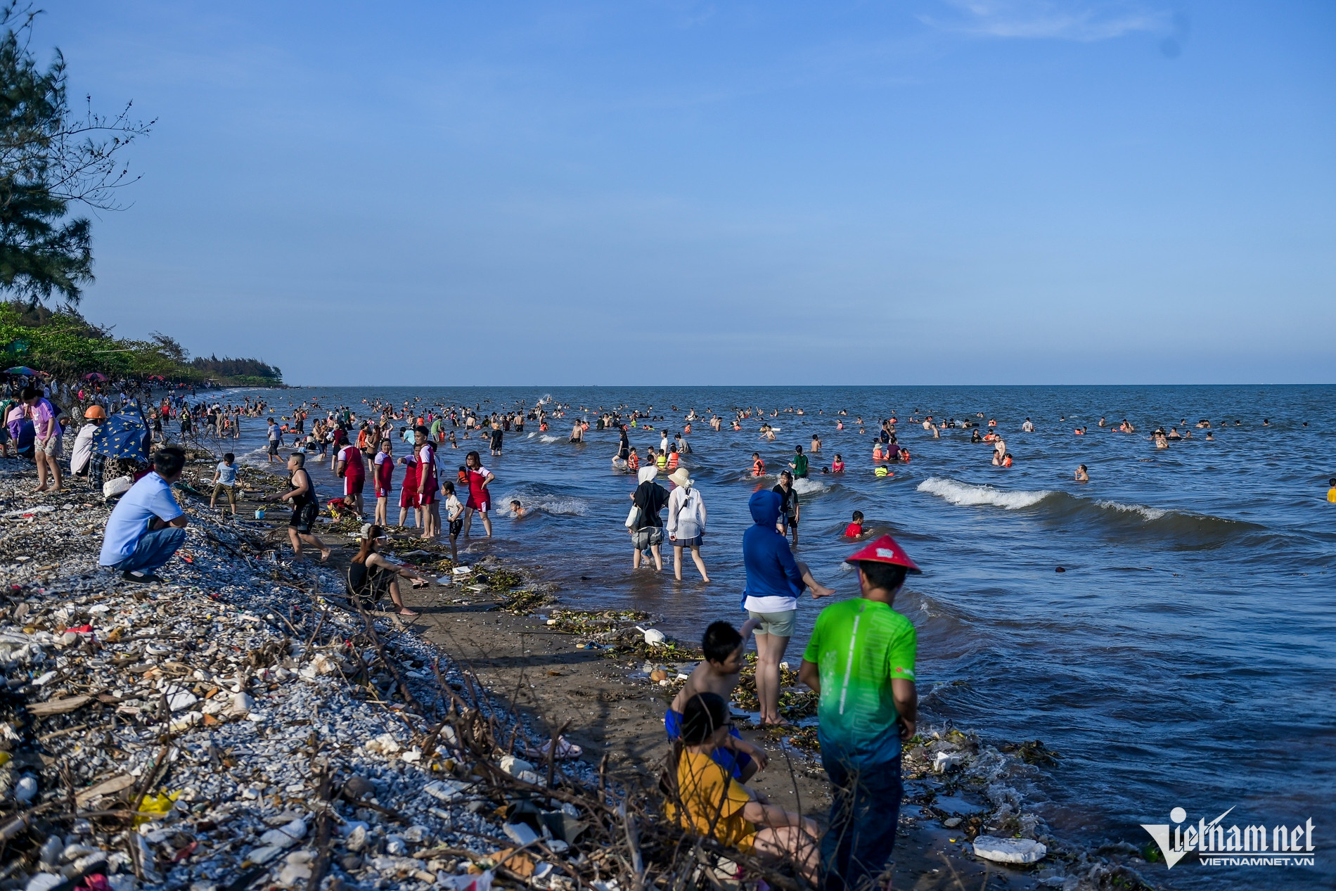 Dù bãi tắm tự phát ở bờ biển Nam Định có nhiều rác dạt vào bờ và có biển "cấm tắm" do tiềm ẩn nguy cơ mất an toàn, song nhiều du khách vẫn vô tư xuống vui chơi, tắm biển.