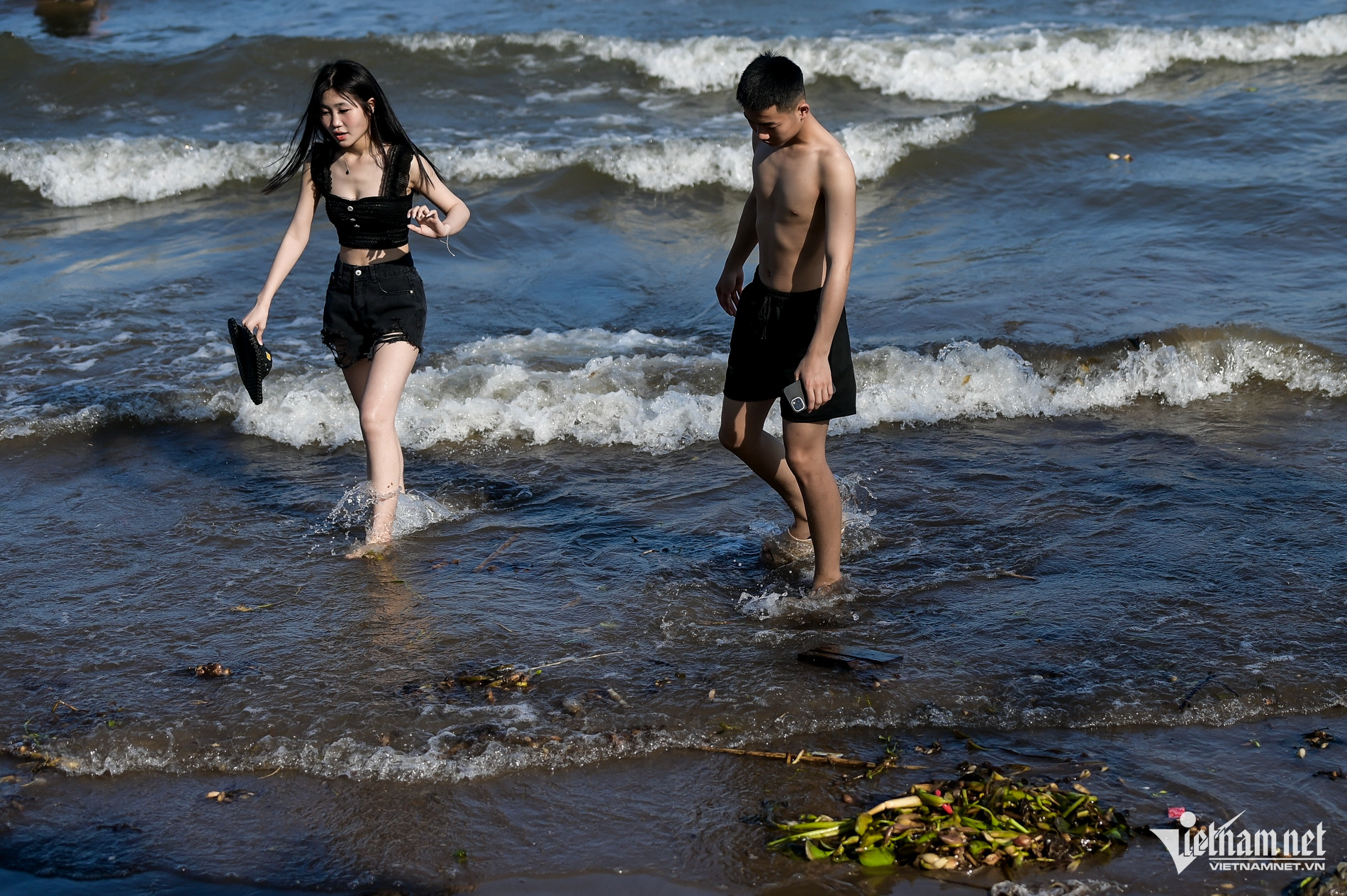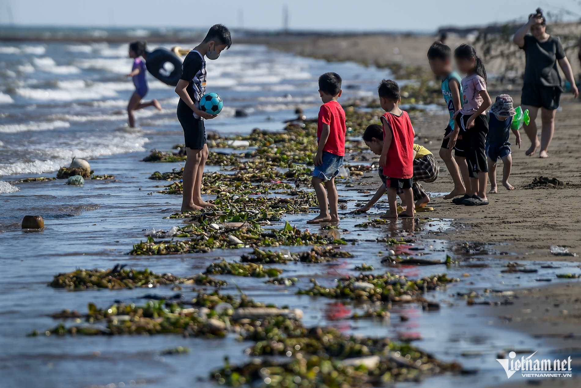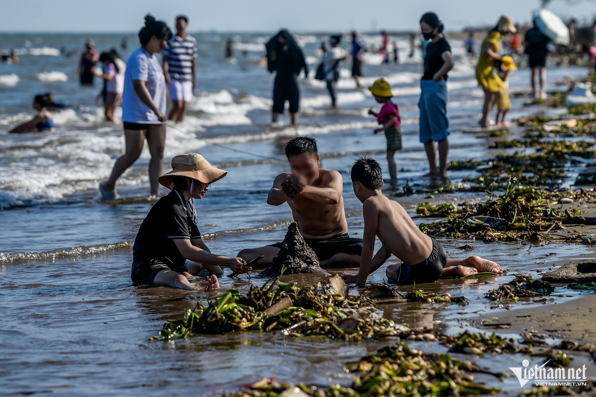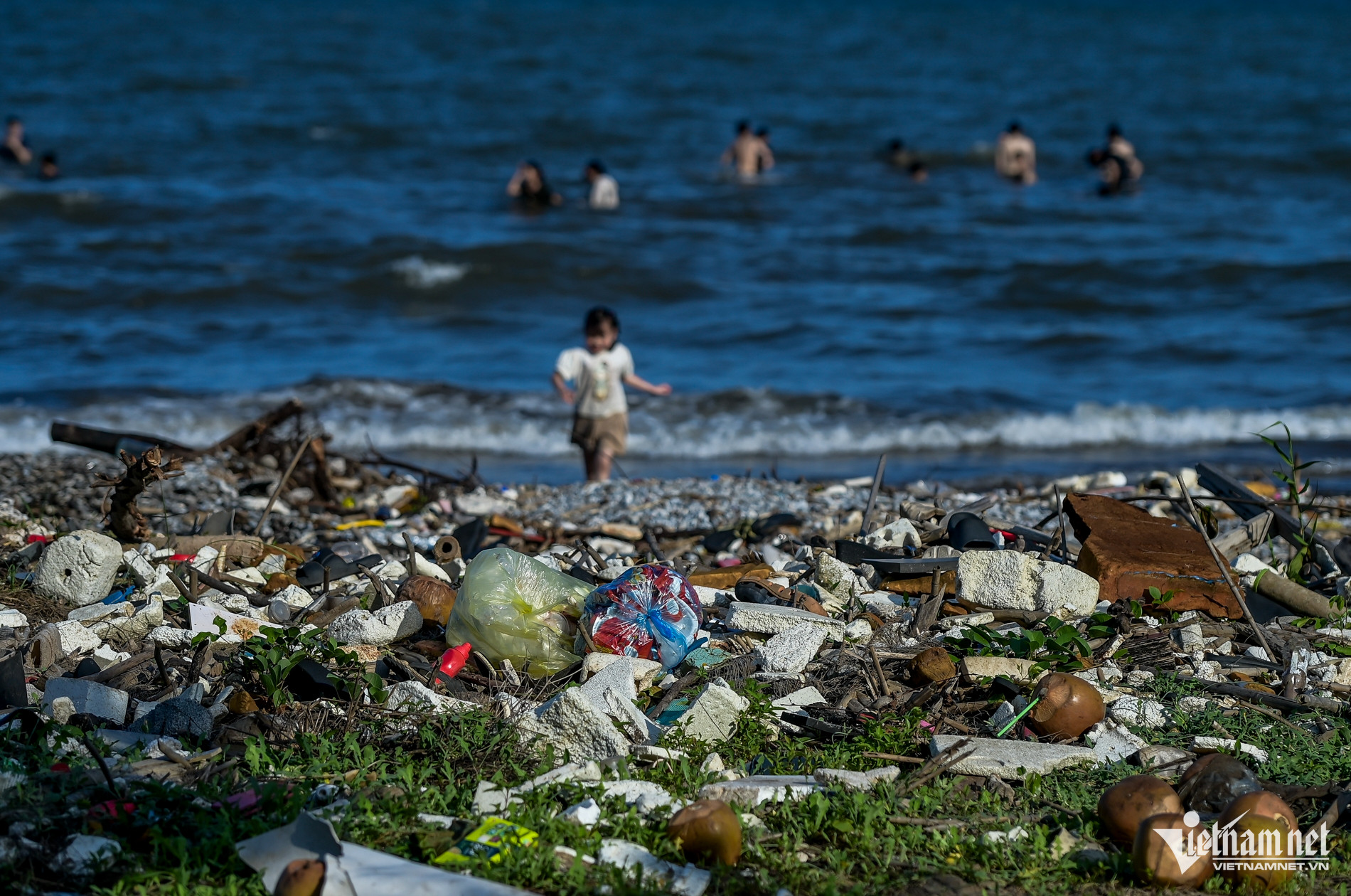 Dù bãi tắm tự phát ở bờ biển Nam Định có nhiều rác dạt vào bờ và có biển "cấm tắm" do tiềm ẩn nguy cơ mất an toàn, song nhiều du khách vẫn vô tư xuống vui chơi, tắm biển.
