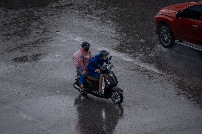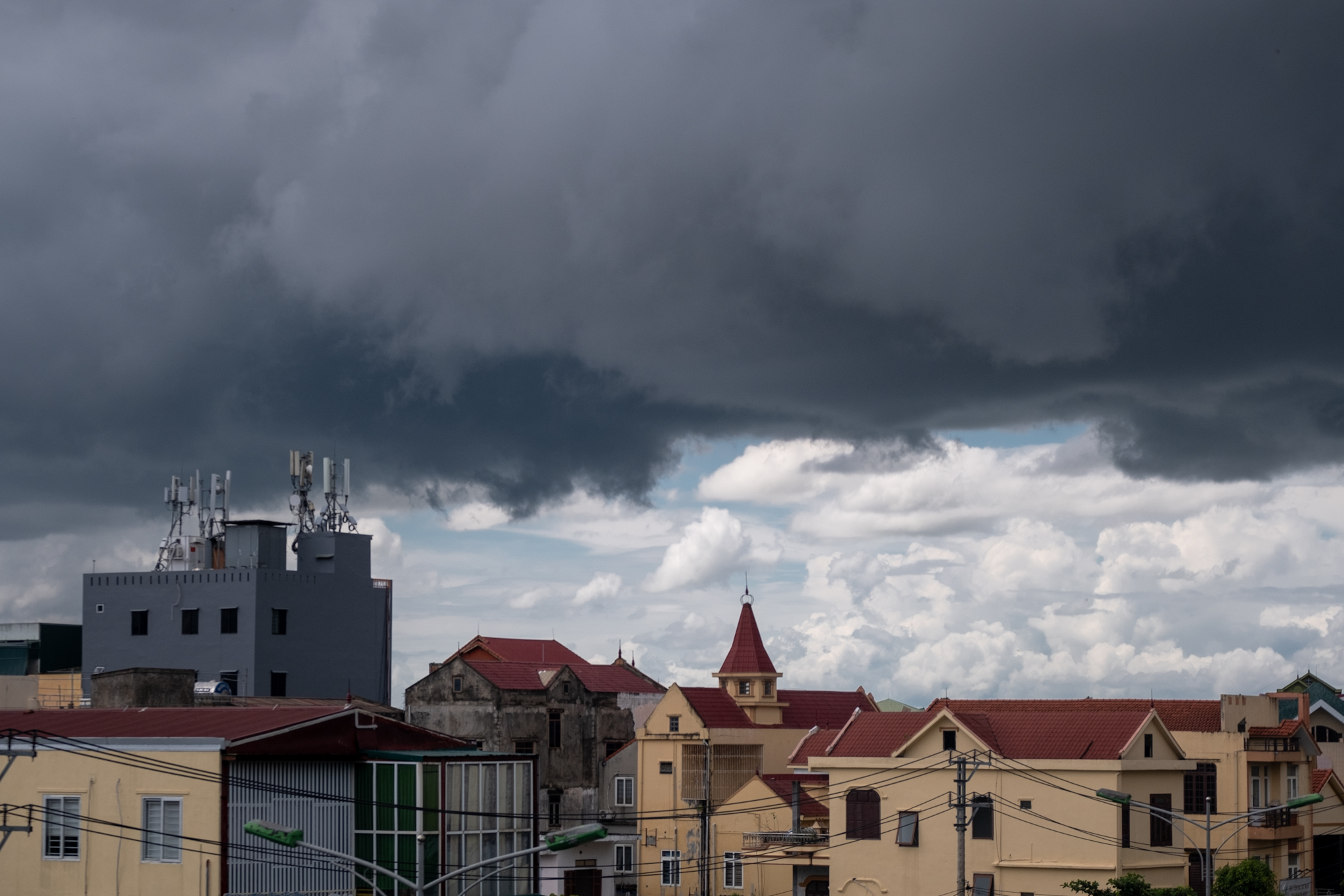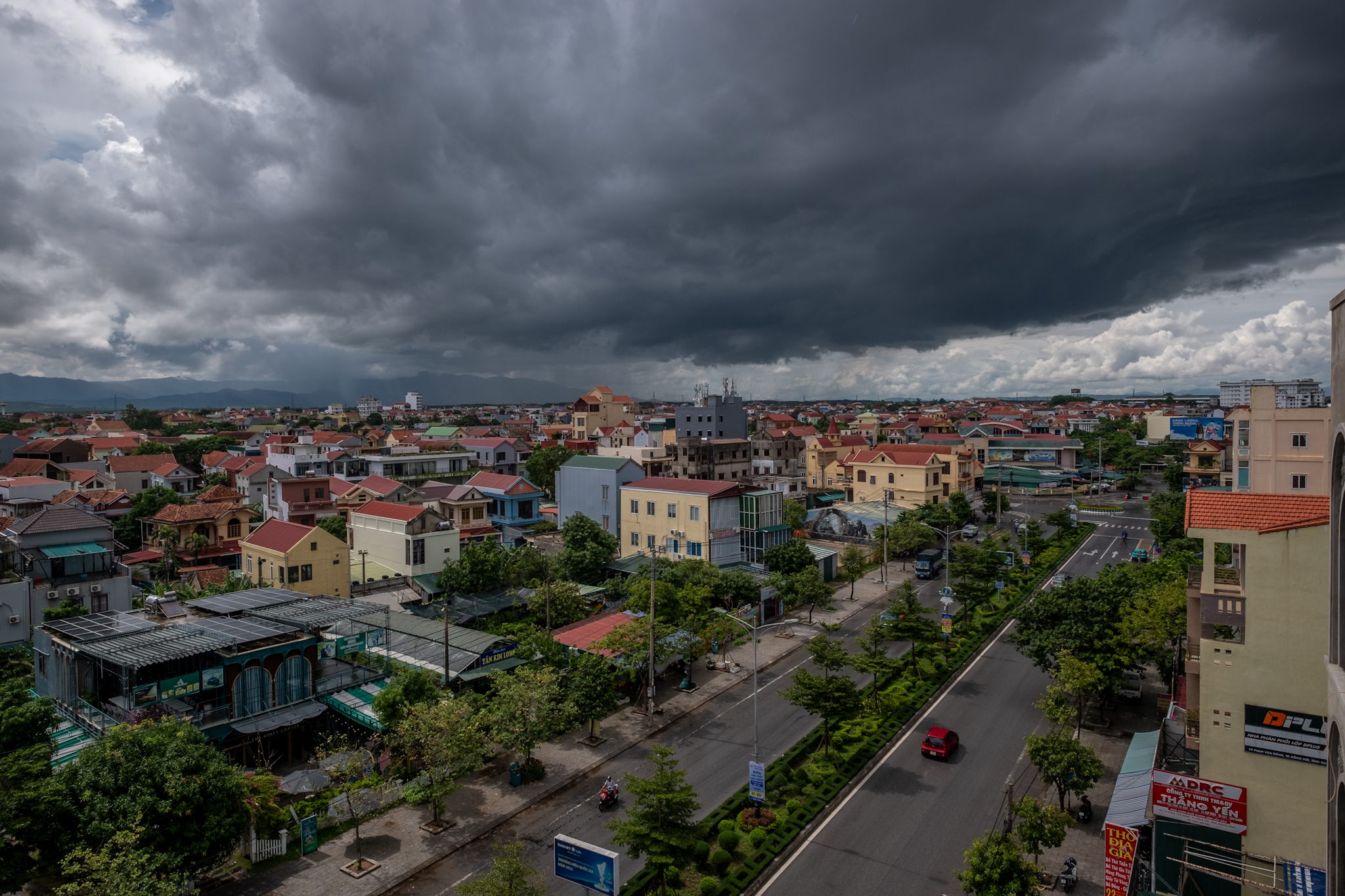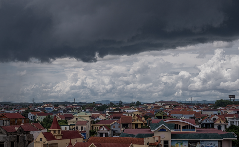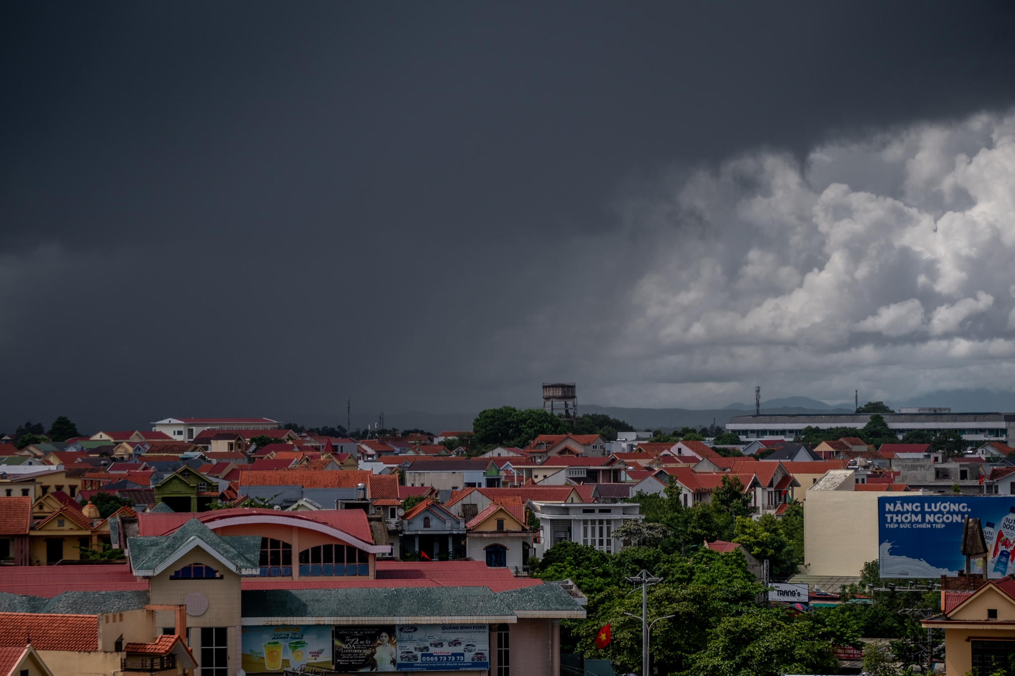 Trưa ngày 21/9, tại TP Đồng Hới (Quảng Bình) bầu trời bỗng tối sầm lại, mây đen cuồn cuộn kéo đến và sau đó là cơn mưa to trút xuống.